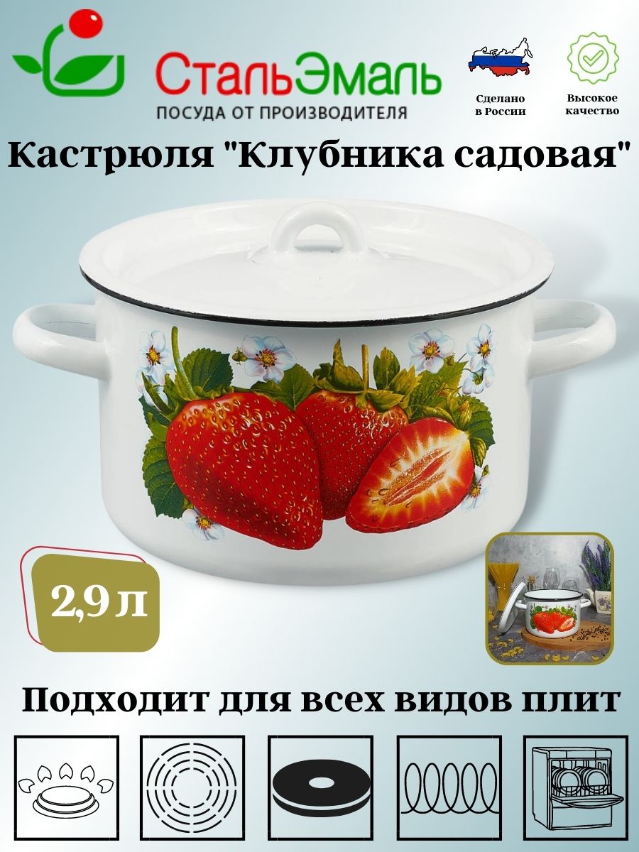 Кастрюля "Клубника садовая" объемом 2,9 литра - это незаменимый помощник на вашей кухне. Она изготовлена из качественной эмалированной стали, что обеспечивает долговечность и надежность изделия.
