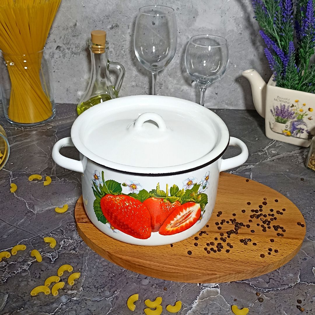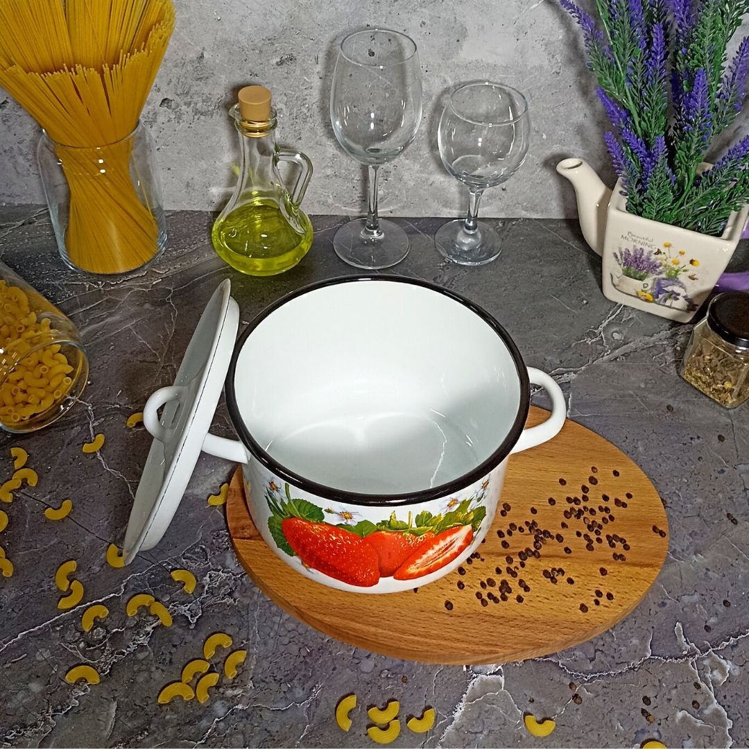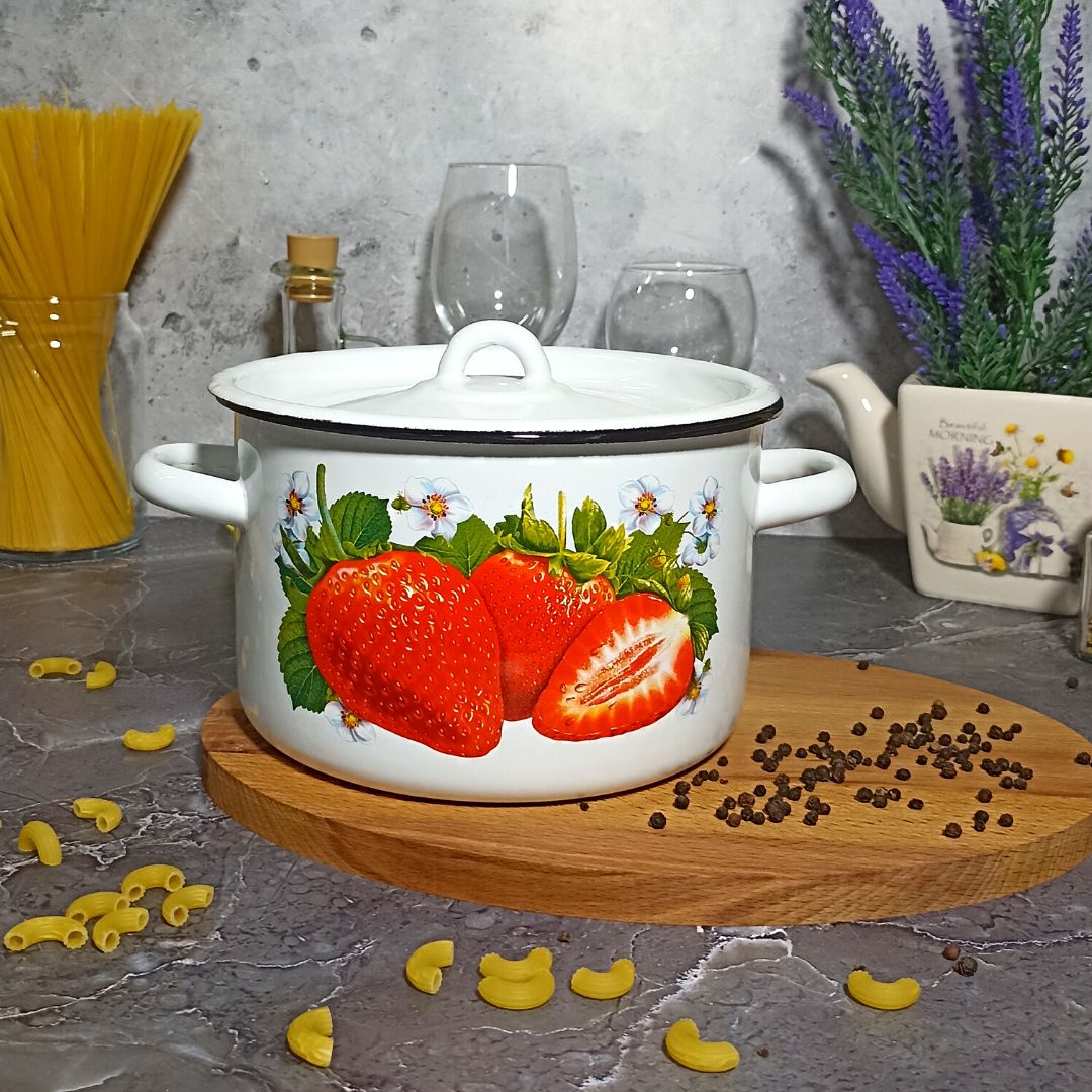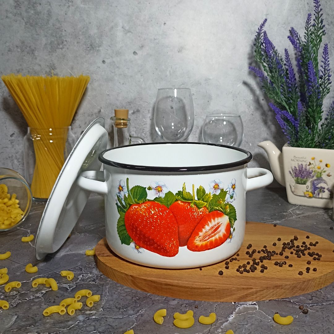 Кастрюля "Клубника садовая" объемом 2,9 литра - это незаменимый помощник на вашей кухне. Она изготовлена из качественной эмалированной стали, что обеспечивает долговечность и надежность изделия.