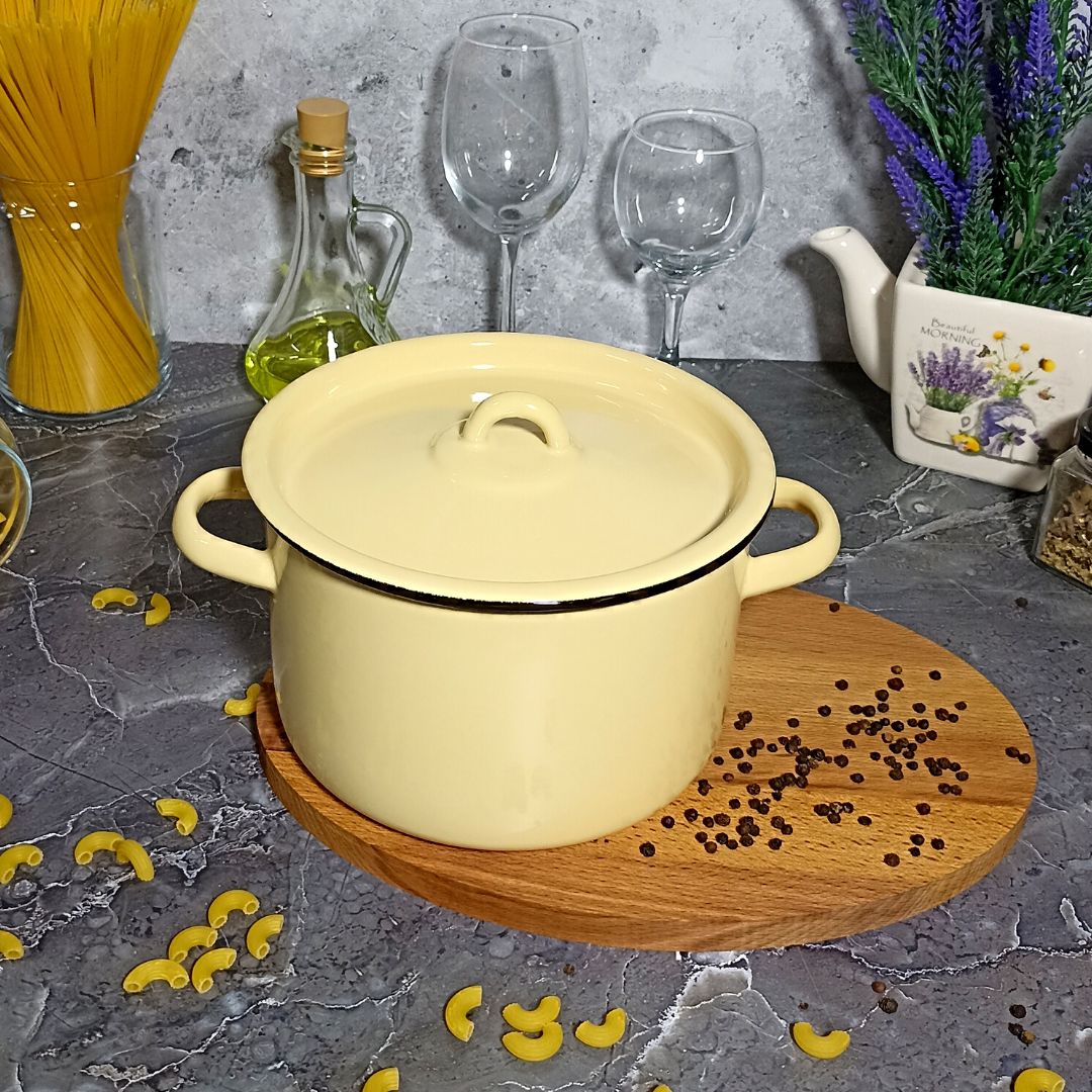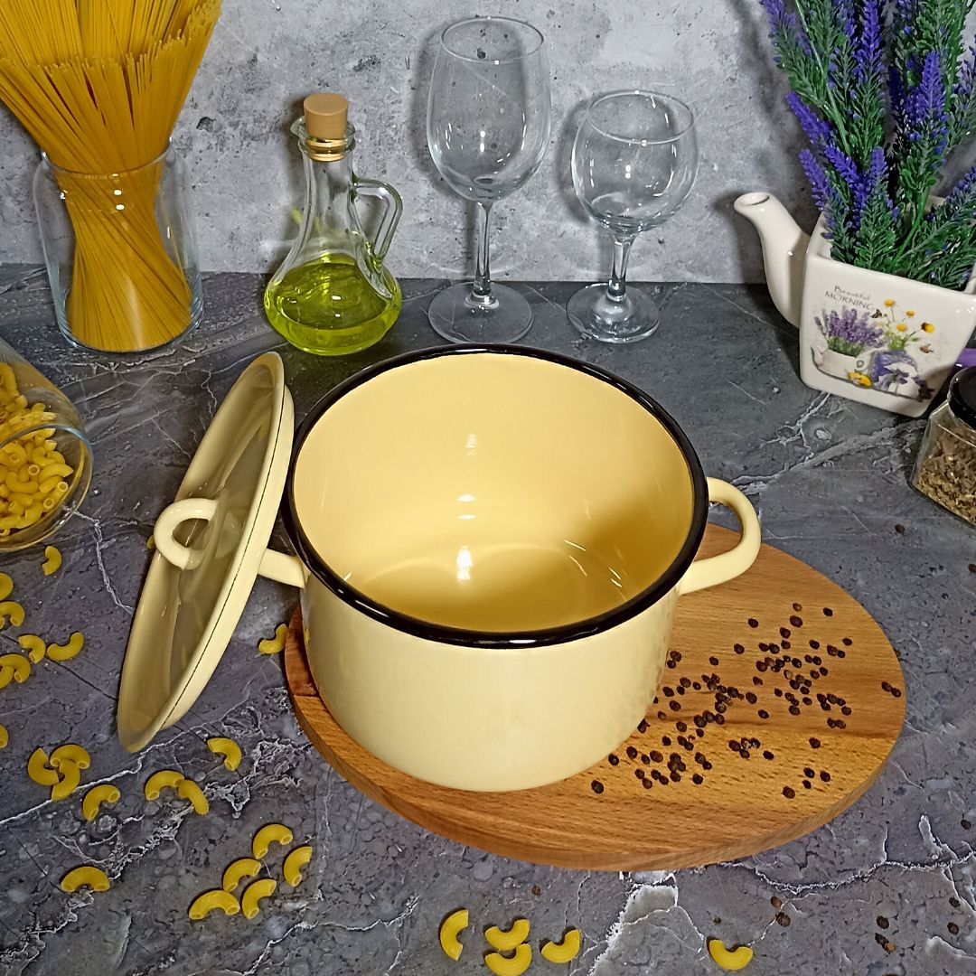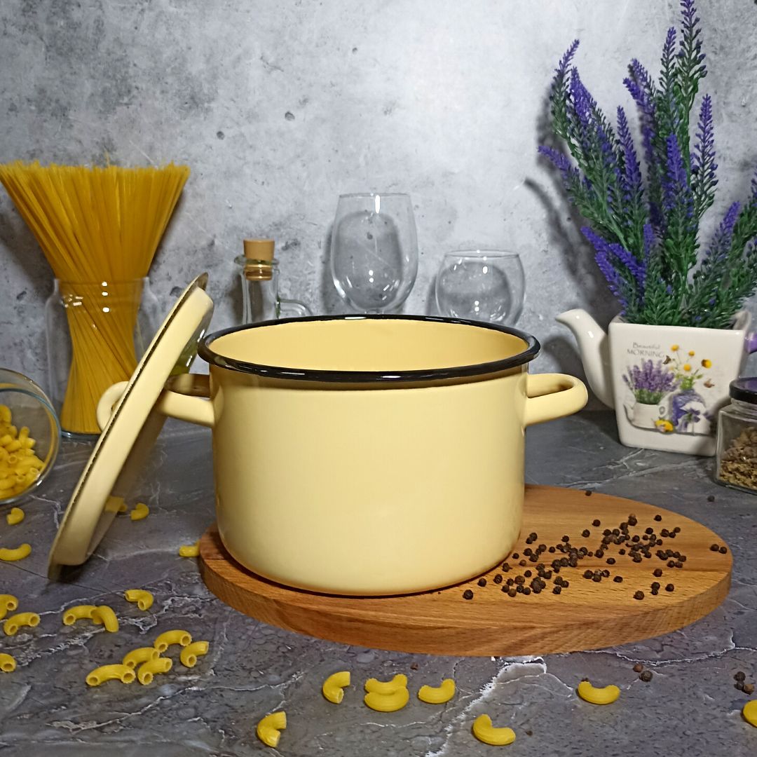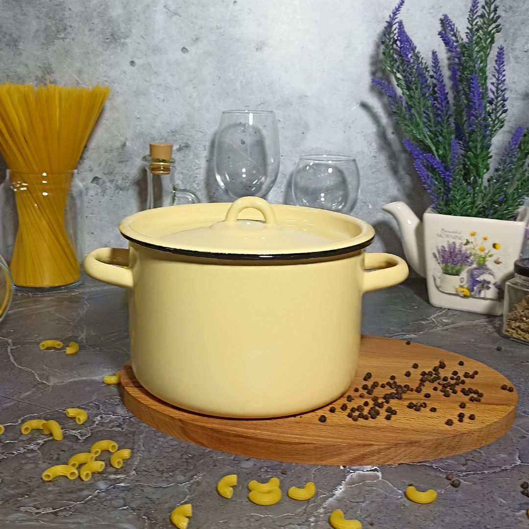 Кастрюля производства "СтальЭмаль" 2,9 л изготовлена из высококачественной стали, покрытой стеклокерамической эмалью.