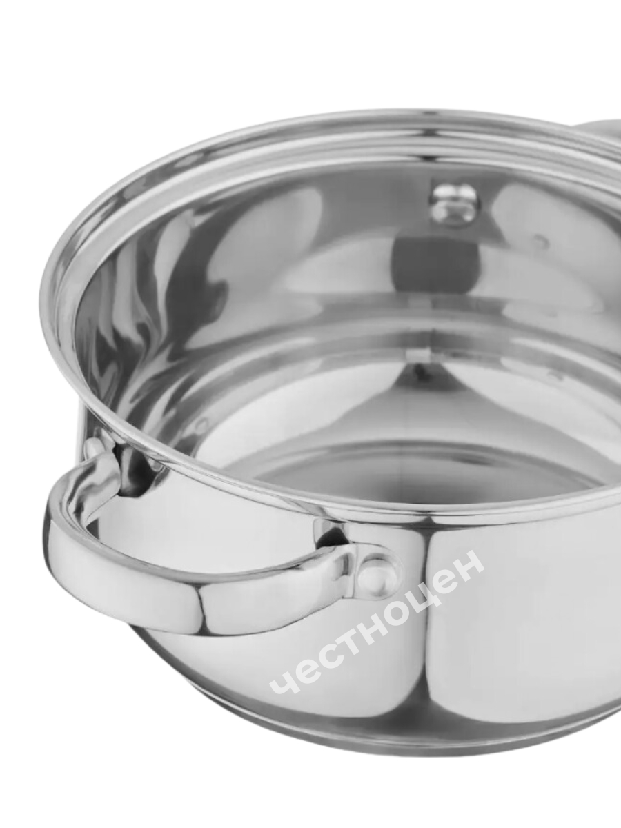 Крышка МЕТАЛЛИЧЕСКАЯ G-типа, с пароотводом. Ручки прикреплены методом клепачной фиксации. Форма корпуса грушевидная, наружная полировка зеркальная.КАПСУЛЬНОЕ: АЛЮМИНИ, Дно-Й+НЕРЖАВЕЮЩАЯ СТАЛЬ. Марка стали 201 Подходит для всех видов плит