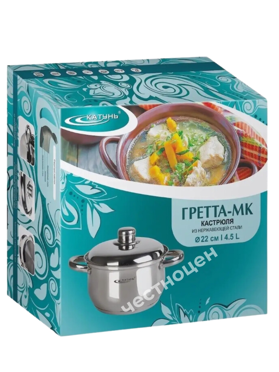 Кастрюля 4,5л "Гретта" KT04-D-45м с метал. кр.