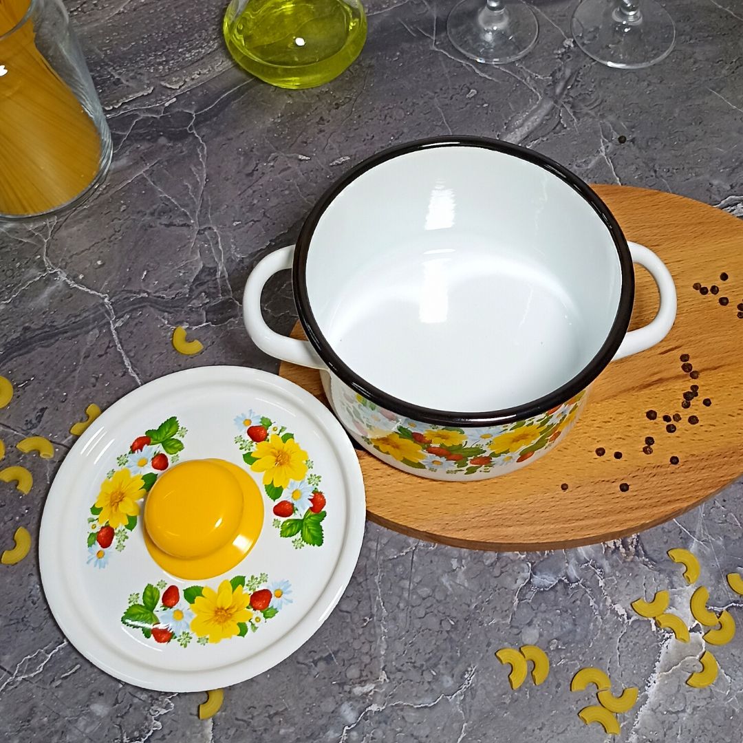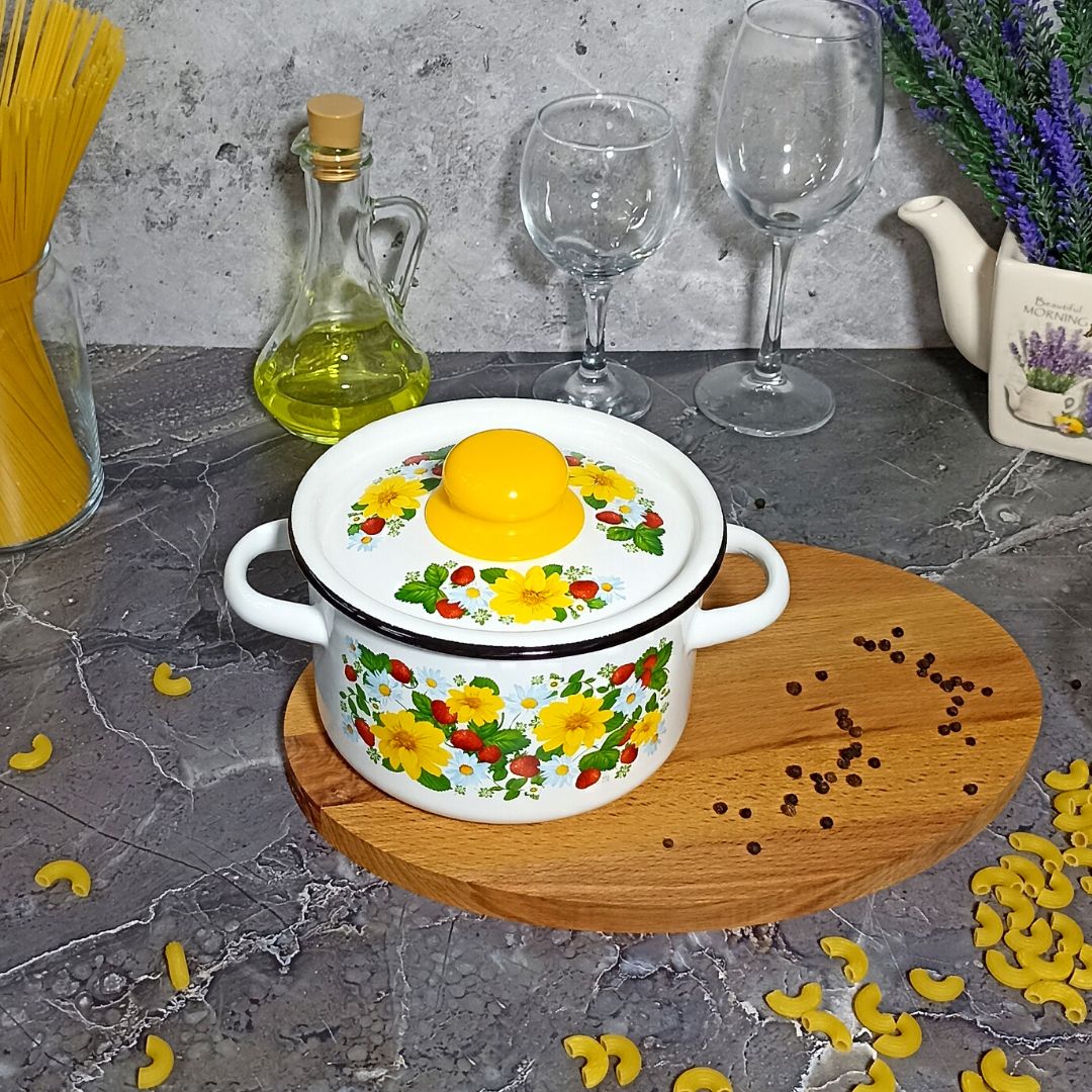 Материал: Эмалированная сталь Диаметр: 122 мм; Высота: 151 мм Объем: 1,5л Инд.упаковка: стикер Состав комплекта: кастрюля - 1 шт ; крышка - 1 шт Цвет: белоснежная Используется для тепловой обработки пищевых продуктов и их хранения. Эмалевое покрытие на основе силикатных фритт, являясь стекольной массой, не вступает во взаимодействие с продуктами, не искажает их вкусовые качества, не окисляется, при нагревании не выделяет опасные для здоровья человека соединения. Многослойное эмалевое покрытие практично, долговечно и устойчиво к появлению царапин и сколов. Прочный металлический корпус не деформируется в процессе эксплуатации и гарантирует эффективную тепловую обработку пищи. Эмалированная посуда подходит для кухонных плит любого типа, в том числе индукционных, а так же для использования в посудомоечной машине. Эмалевое покрытие наружной поверхности посуды является стойким к прямому контакту с пламенем газовой горелки бытовых газовых плит.