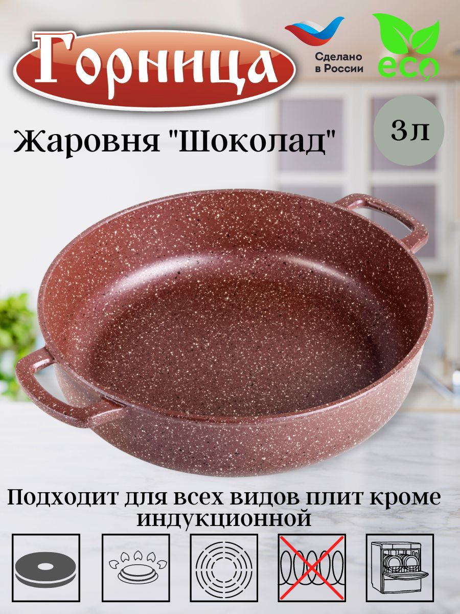 Литая алюминиевая жаровня с антипригарным покрытием подходит для газовых, электрических и стеклокерамических плит. Жаровни с цельнолитыми ручками можно использовать в духовом шкафу. В жаровне можно готовить разные продукты: мясо, овощи, грибы и т.д. Также в ней можно приготовить плов рагу, жаркое или даже испечь пирог. Готовьте вкуснейшие блюда с минимальным количеством масла.