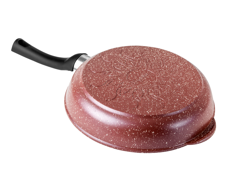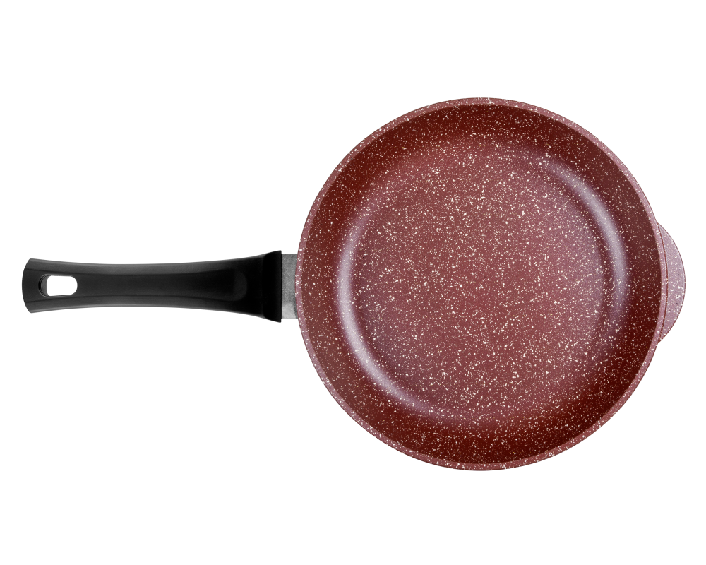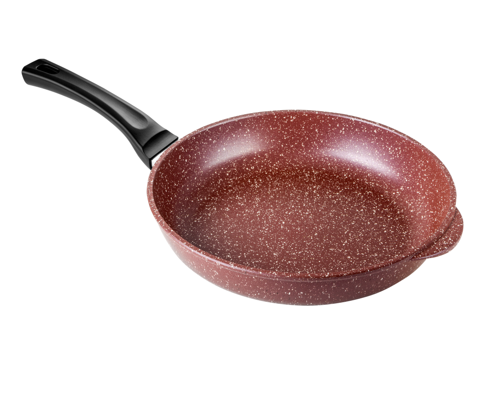 Литая алюминиевая сковорода с антипригарным покрытием – оригинальная посуда ТМ Горница, которая подходит для газовых, электрических и стеклокерамических плит. Коллекция с улучшенным четырёхслойным антипригарным покрытием. Дополнительный слой с мраморным эффектом увеличивает износостойкость и создаёт цветовой эффект мрамора шоколадного оттенка. Сковорода литая изготовлена из пищевого алюминия без канцерогенных веществ. Антипригарная сковорода имеет толстые стенки и утолщенное дно, что способствует равномерному распределению тепла и создает благоприятные условия для качественного процесса готовки.