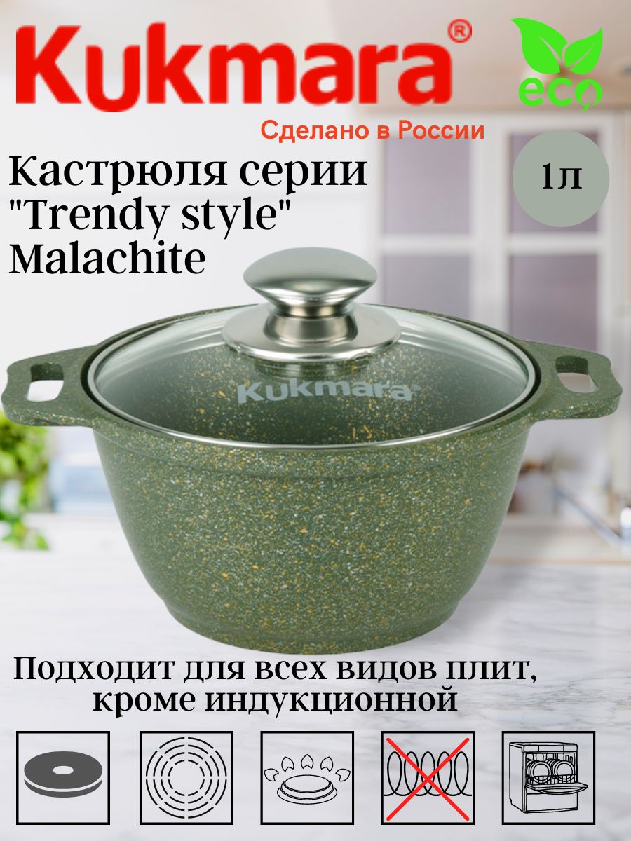 Посуда линии Trendy style с внешней стороны и внутренней стороны покрыта антипригарным покрытием увеличенной прочности, абсолютно безопасным для здоровья, без PFOA. Антипригарное покрытие надолго сохраняет первозданную яркость и привлекательность посуды, а превосходные антипригарные свойства будут радовать на протяжении очень долгого времени. Допускает использование только деревянных и силиконовых предметов. Покрытие не требует особенного ухода, легко моется как вручную, так и в посудомоечной машине (в режиме Eco без предварительного замачивания).Кастрюля Kukmara хорошо подходит для варки, тушения и томления, так как имеет отличные теплораспределительные и теплоаккумулирующие свойства, и блюда в ней получаются сочными и ароматными. Цельнолитые ручки позволяют использовать кастрюлю в духовом шкафу.Функциональность посуды увеличивает стеклянная крышка из термостойкого стекла, благодаря которой можно наблюдать за приготовлением пищи и не снимать крышку каждый раз, теряя при этом изрядное количество тепла.