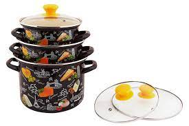Стальная эмалированная посуда производится из высококачественного металла, покрытого двумя слоями жаропрочной эмали. Для производства посуды используются экологически чистые цветные эмали, обеспечивающие высокую коррозийную стойкость.