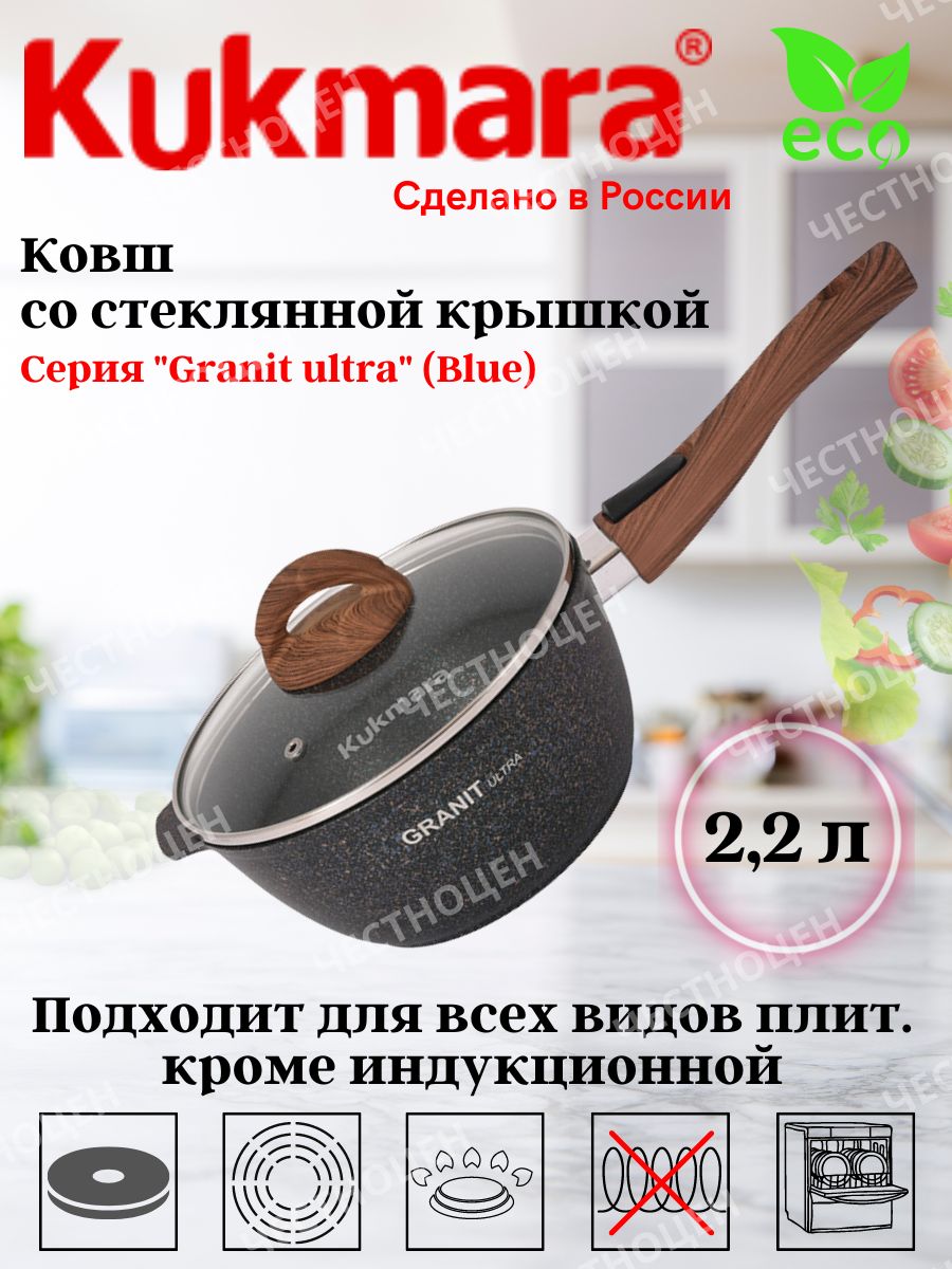 Ковш 2,2л со съемной ручкой, стекл.крышка АП "Granit ultra" кгг0225а