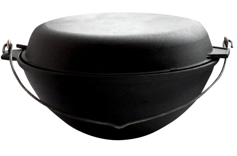 Котел 5л литой чугунный с дужкой, с чугунной крышкой-сковородой к53д