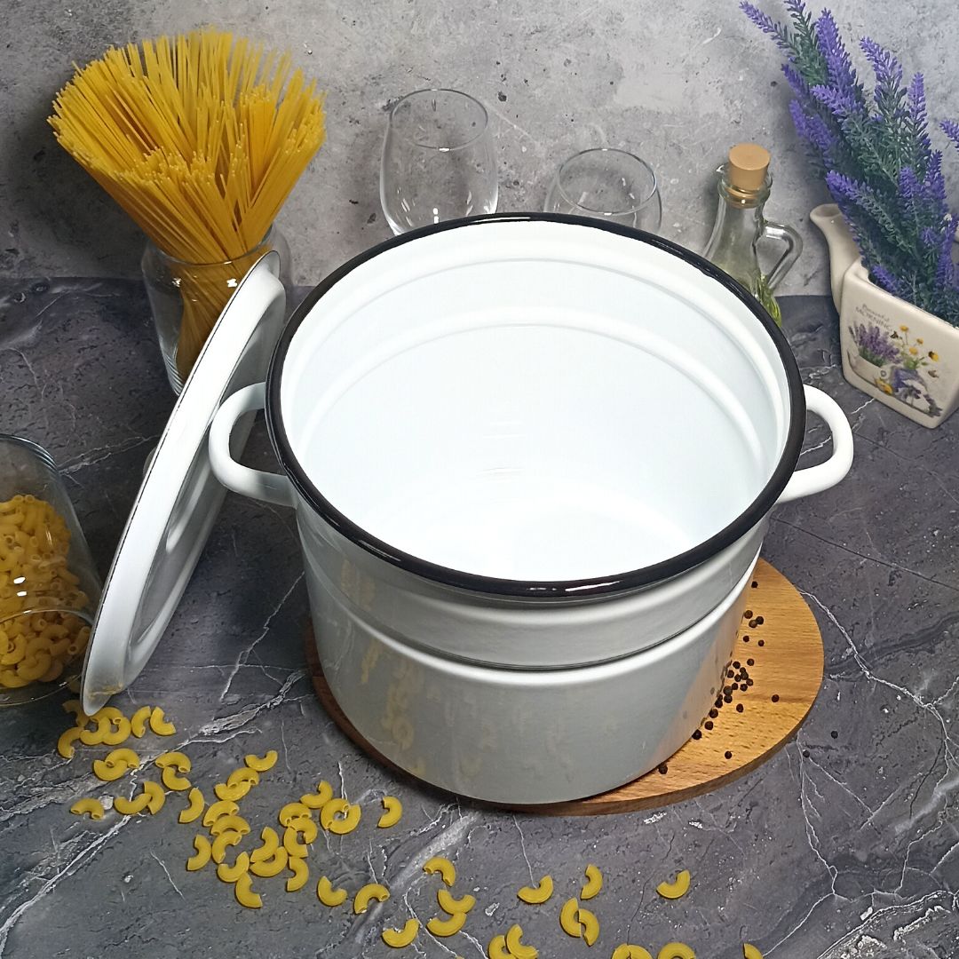 Эмалированная посуда подходит для кухонных плит любого типа, в том числе индукционных, а так же для использования в посудомоечной машине. Эмалевое покрытие наружной поверхности посуды является стойким к прямому контакту с пламенем газовой горелки бытовых газовых плит.