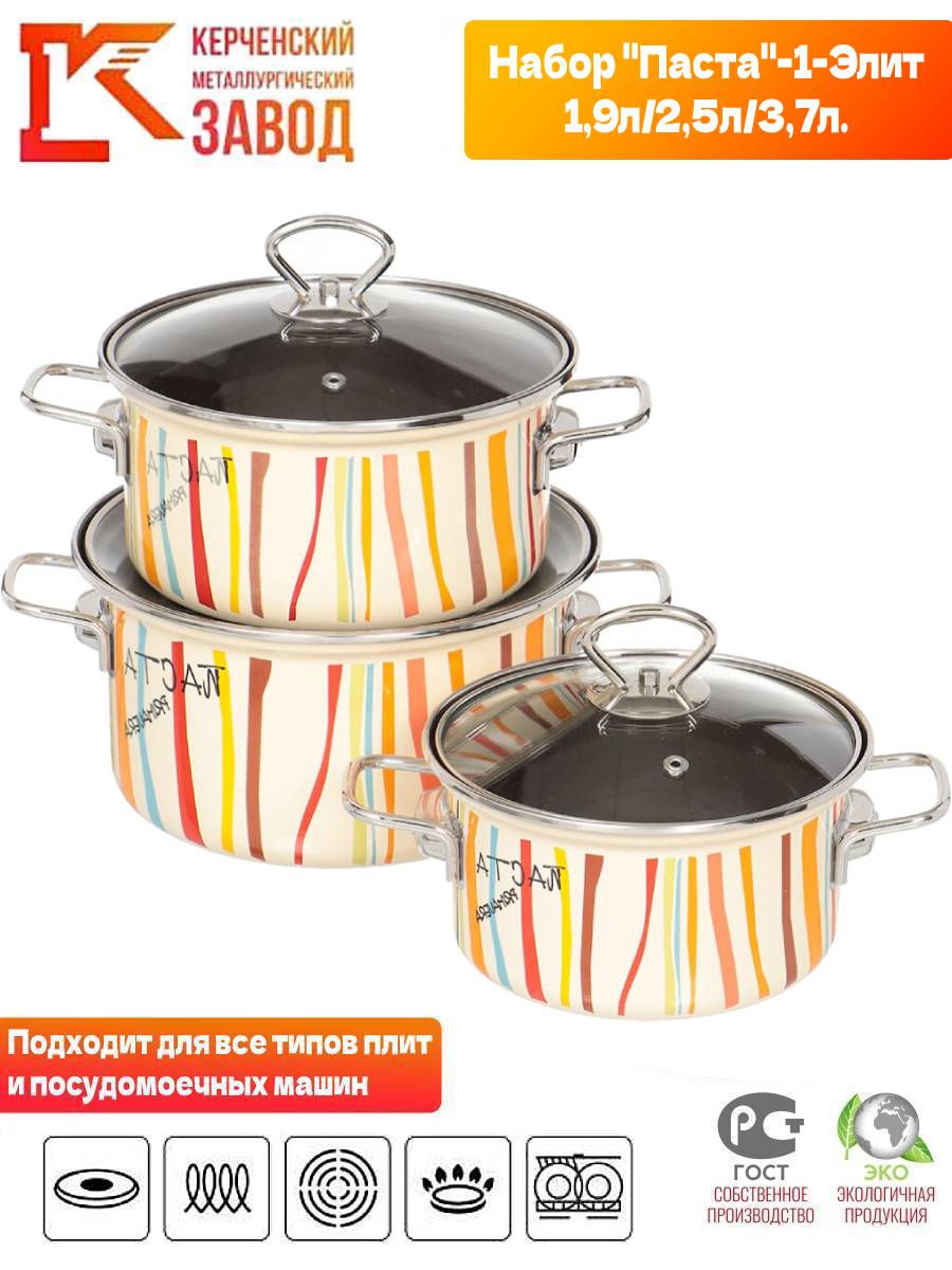 Набор посуды для готовки "Паста-1-Элит" - это высококачественный набор, состоящий из трех кастрюль разного объема. Изготовлен из эмалированной стали, что обеспечивает долговечность и прочность изделий.