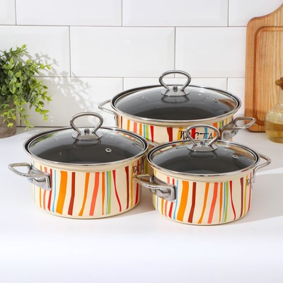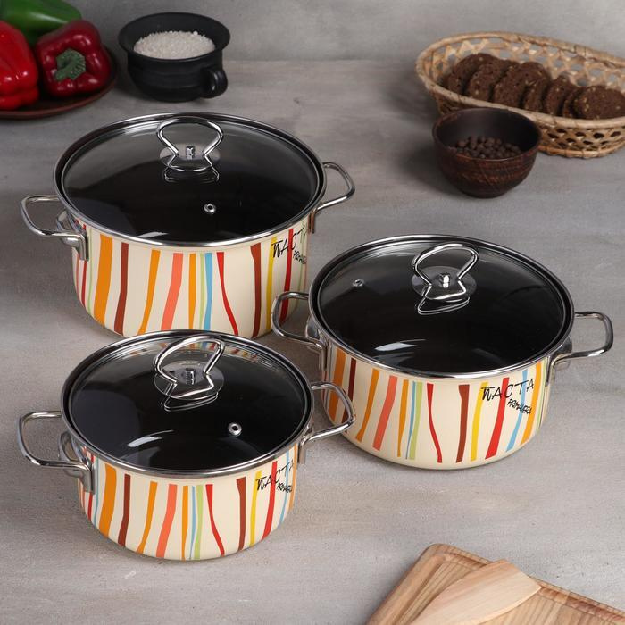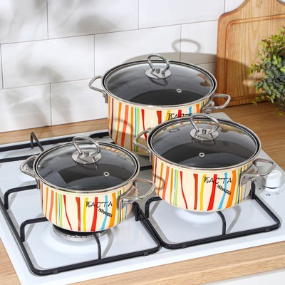 Набор посуды для готовки "Паста-1-Элит" - это высококачественный набор, состоящий из трех кастрюль разного объема. Изготовлен из эмалированной стали, что обеспечивает долговечность и прочность изделий.