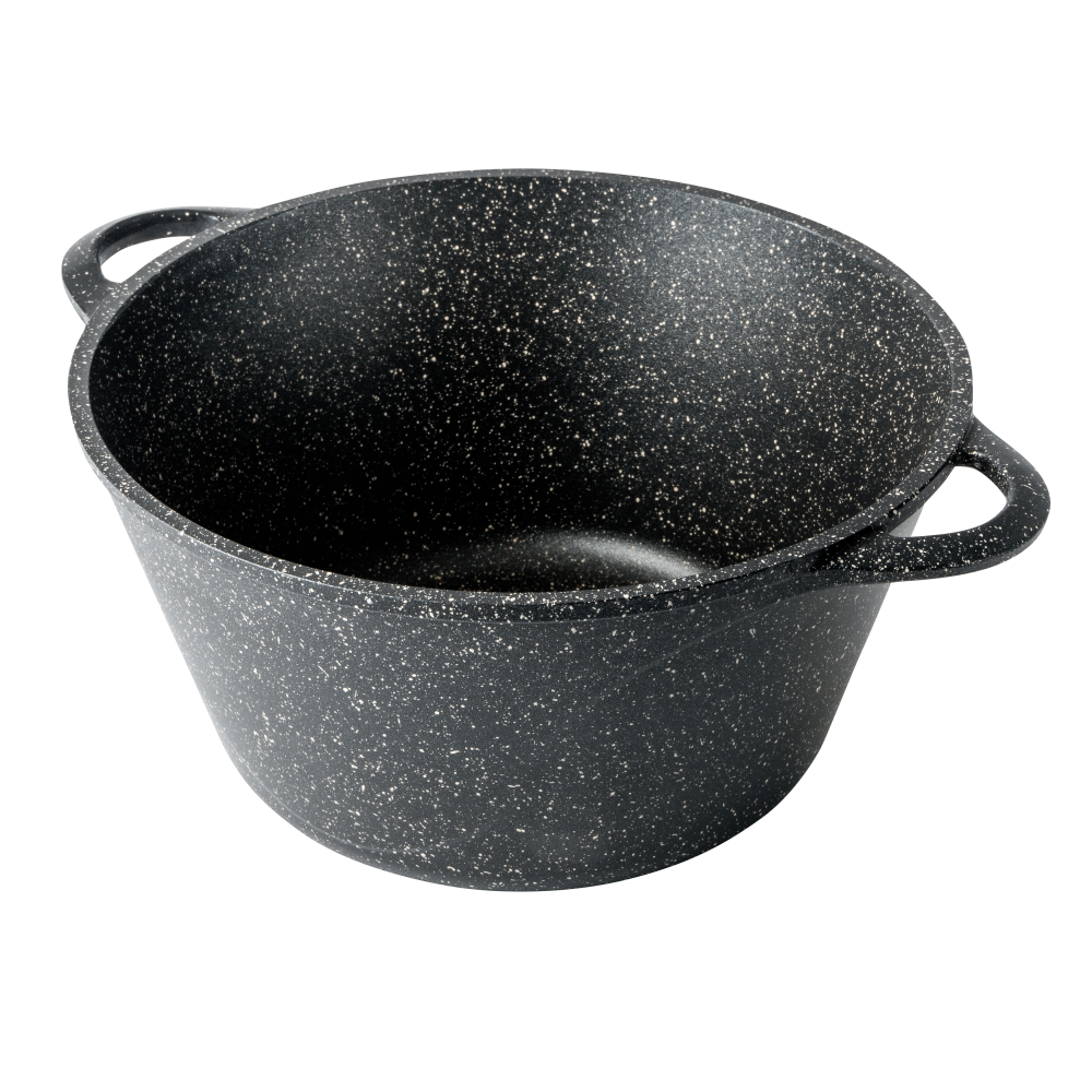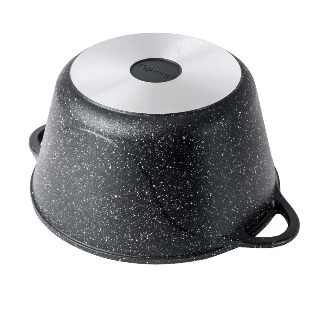 Высококачественное сверхпрочное антипригарное покрытие наносится методом напыления, что обеспечивает долговечность покрытия и высокую надежность посуды. Применяемое покрытие не содержит в своем составе опасных для здоровья человека веществ PFOA и устойчиво к агрессивным средам и воздействиям температуры. При нагревании посуды также не выделяются вредные токсичные и канцерогенные вещества, использован