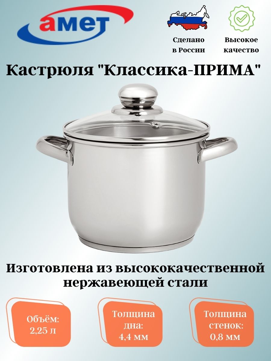 Кастрюля серии "Классика-ПРИМА" предназначена для приготовления пищи, долговечна и неприхотлива в эксплуатации. Изготавливается из нержавеющей (коррозионностойкой) стали согласно ГОСТ, поэтому гигиенична и безопасна для здоровья Вашей семьи. Нержавеющая сталь обладает малой теплопроводностью, поэтому посуда из нее остывает гораздо медленнее, чем любой другой вид посуды, а значит,приготовленное в ней более длительное время остается горячим. Подходит для индукционных, стекло-керамических, газовых и электрических плит, БЕЗ крышки посуду можно использовать в духовке и мыть в посудомоечной машине. Диаметр дна 136мм, толщина дна 4,7мм, толщина стенок 0,8мм, высота без крышки 129 мм.