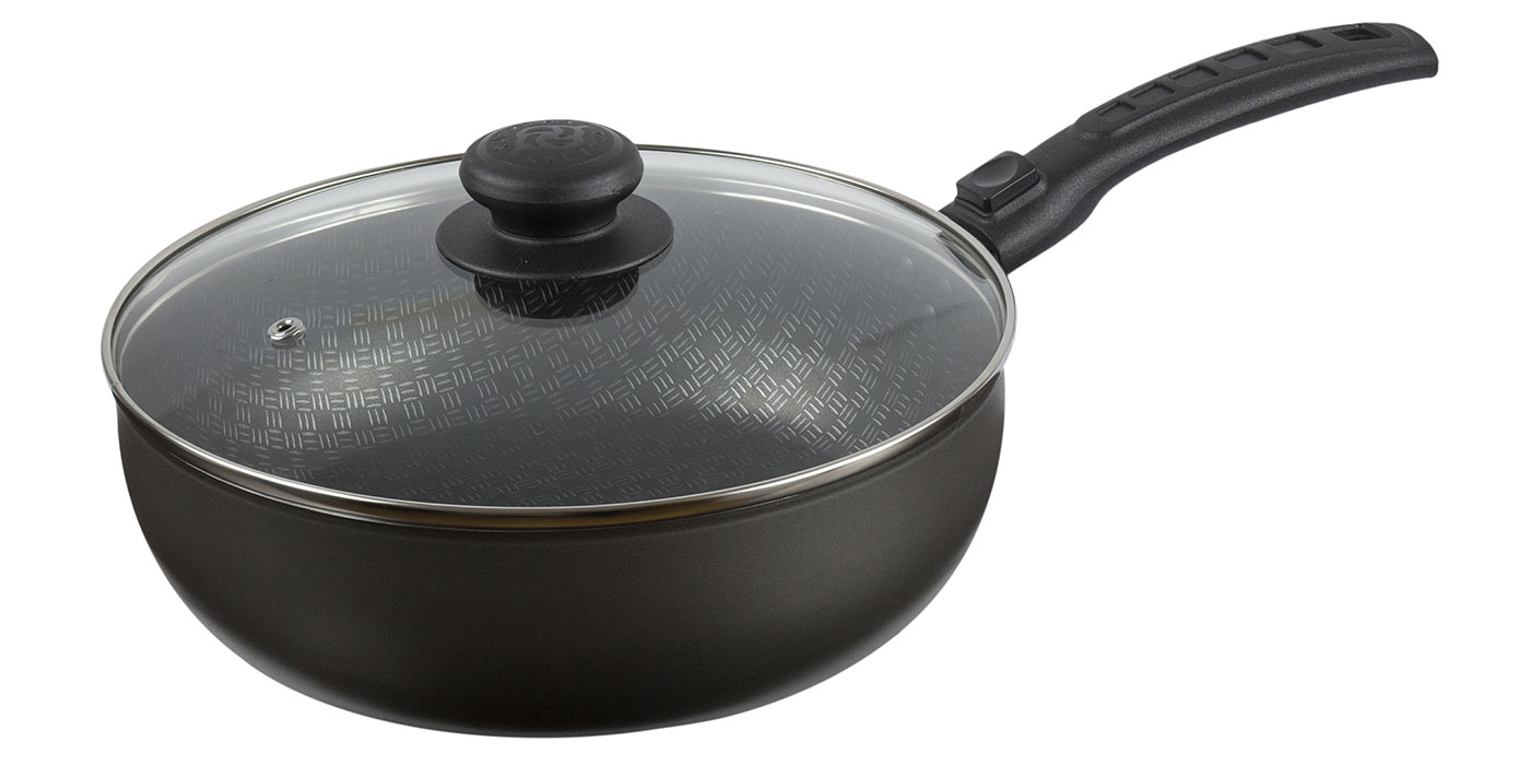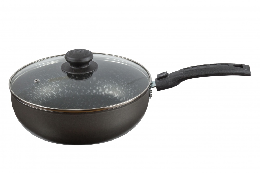 Сотейник 24 см со стеклянной крышкой – универсальная высокотехнологичная посуда для приготовления еды каждый день на любой кухне. Оптимальные характеристики износостойкости и безопасности обеспечивают: корпус из штампованного пищевого алюминия толщиной 1,8 мм, трехслойное антипригарное европейское покрытие снаружи и с полихромной сеткой внутри.