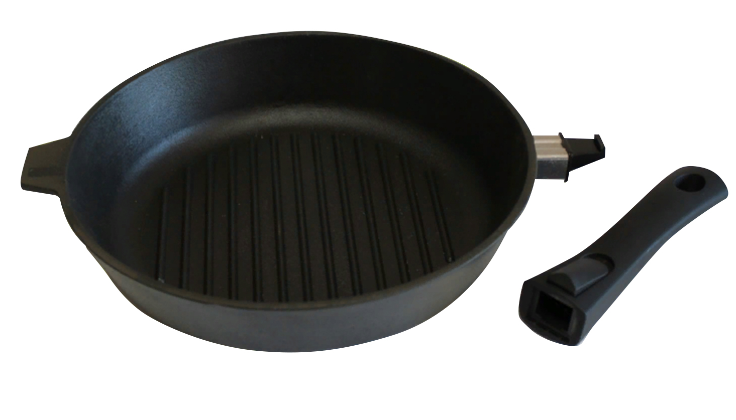 Сковорода гриль литая чугунная 280*60 с двумя ушками с чугунной крышкой гу8063