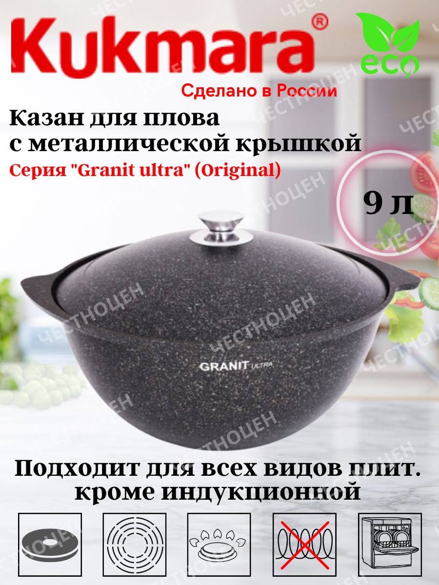 Казан для плова Kukmara сделана из литого алюминия и имеет уникальное ультрапрочное антипригарное покрытие Ultra granit.