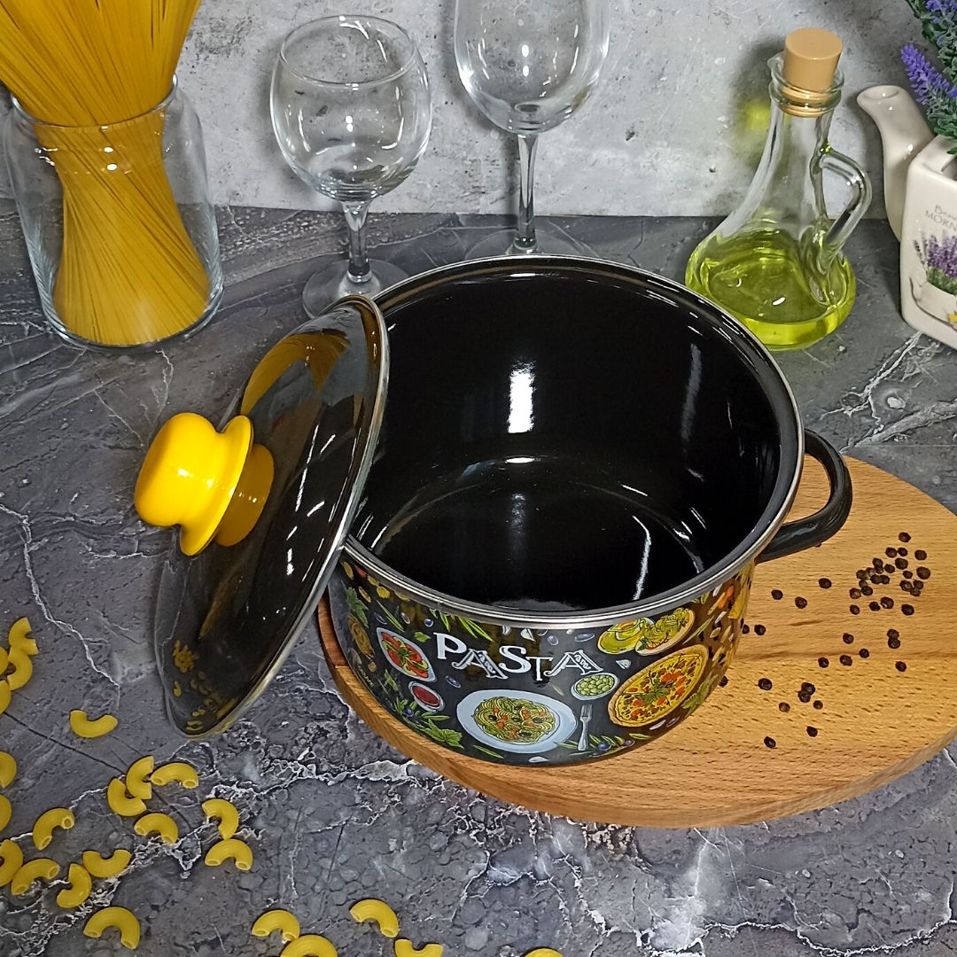 Посуда Стальэмаль рассчитана на длительный срок эксплуатации. Она подходит для любых видов плит и посудомоечных машин. Прочный корпус из холоднокатаного стального проката гарантирует эффективную тепловую обработку пищи. Благодаря двойному слою эмалевого покрытия исключается проникновение в пищу оксидов металла. Покрытие инертно и устойчиво к пищевым кислотам, не вступает во взаимодействие с продуктами и не искажает их вкусовые качества.