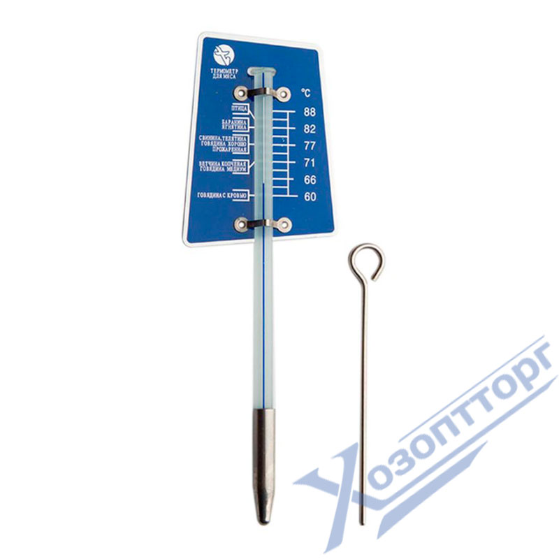 Для приготовления крупных кусков мяса, птицы и рыбы полезно иметь термометр для жарки: готовя гриль-курицу, можно быть уверенным, что птица пропечётся изнутри, а филе говядины будет снято с огня в тот нужный момент, когда ещё остаётся полусырым. Термометр для мяса - хороший помощник при оценке степени его готовности, так как он показывает температуру внутри мяса во время приготовления, что позволяет поддерживать точную температуру мяса, необходимую для уничтожения всех вредных для здоровья бактерий. Воткните термометр в мясо перед тепловой обработкой в самую толстую часть куска. Следите, чтобы острие (""датчик"" термометра) всегда заканчивалось по возможности посередине самой толстой части мяса, и при этом не находилось вблизи кости, либо внутри жировой прослойки. После достижения необходимой внутренней температуры все вредные бактерии будут уничтожены. Говядина - 71 °С, Телятина - 77 °С, Свинина - 77°С, Баранина - 82 °С, Птица - 85 °С.