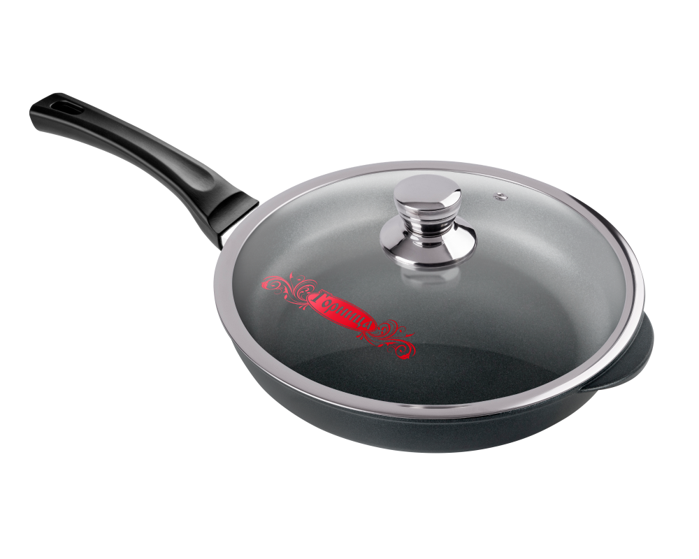 Сковорода 260/55мм с пластиковой ручкой с крышкой с2611а