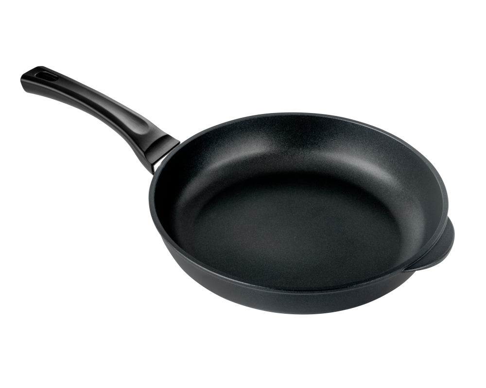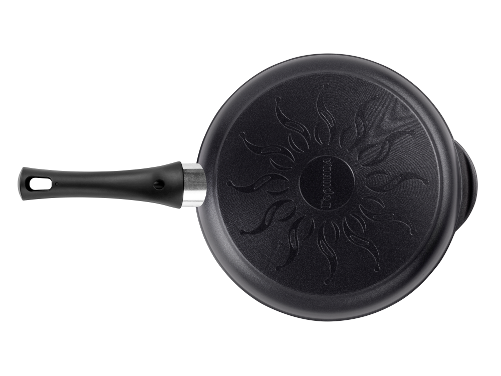 Литая алюминиевая сковорода с антипригарным покрытием – оригинальная посуда ТМ Горница, которая подходит для газовых, электрических и стеклокерамических плит. «Классик». Металлическая посуда базовой коллекции с однотонным чёрным покрытием. Трёхслойное антипригарное покрытие гарантирует долгий срок службы и качественное приготовление блюд. Сковорода литая изготовлена из пищевого алюминия без канцерогенных веществ. Антипригарная сковорода имеет толстые стенки и утолщенное дно, что способствует равномерному распределению тепла и создает благоприятные условия для качественного процесса готовки. Антипригарное покрытие на водной основе не содержит вредных химических соединений. Посуда металлическая имеет гладкую поверхность, что облегчает процесс мытья. Сковорода со съёмной ручкой может быть применена в духовом шкафу. Ручка для сковороды из бакелита не нагревается и не выскальзывает из рук.