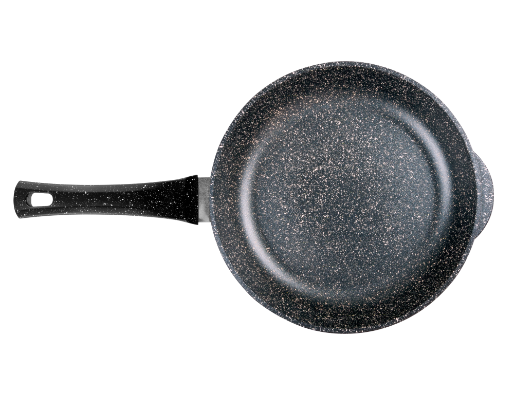 Литая алюминиевая сковорода с антипригарным покрытием – оригинальная посуда ТМ Горница, которая подходит для газовых, электрических, стеклокерамических плит.«Гранит». Коллекция «мраморной посуды» с улучшенным четырёхслойным антипригарным покрытием. Дополнительный слой с мраморным эффектом увеличивает износостойкость и создаёт оттенок чёрного мрамора. Сковорода литая изготовлена из пищевого алюминия без канцерогенных веществ. Антипригарная сковорода имеет толстые стенки и утолщенное дно, что способствует равномерному распределению тепла и создает благоприятные условия для качественного процесса готовки.