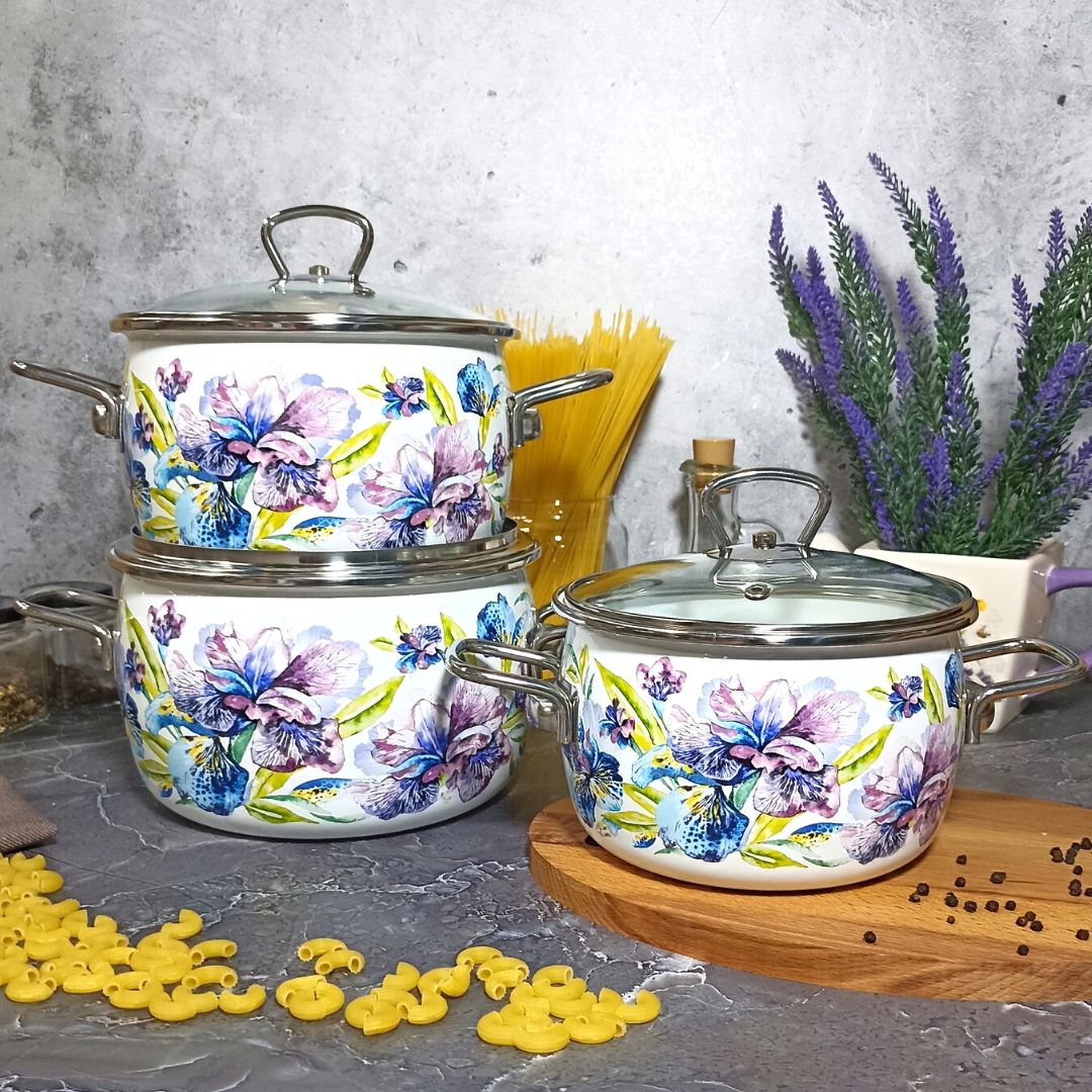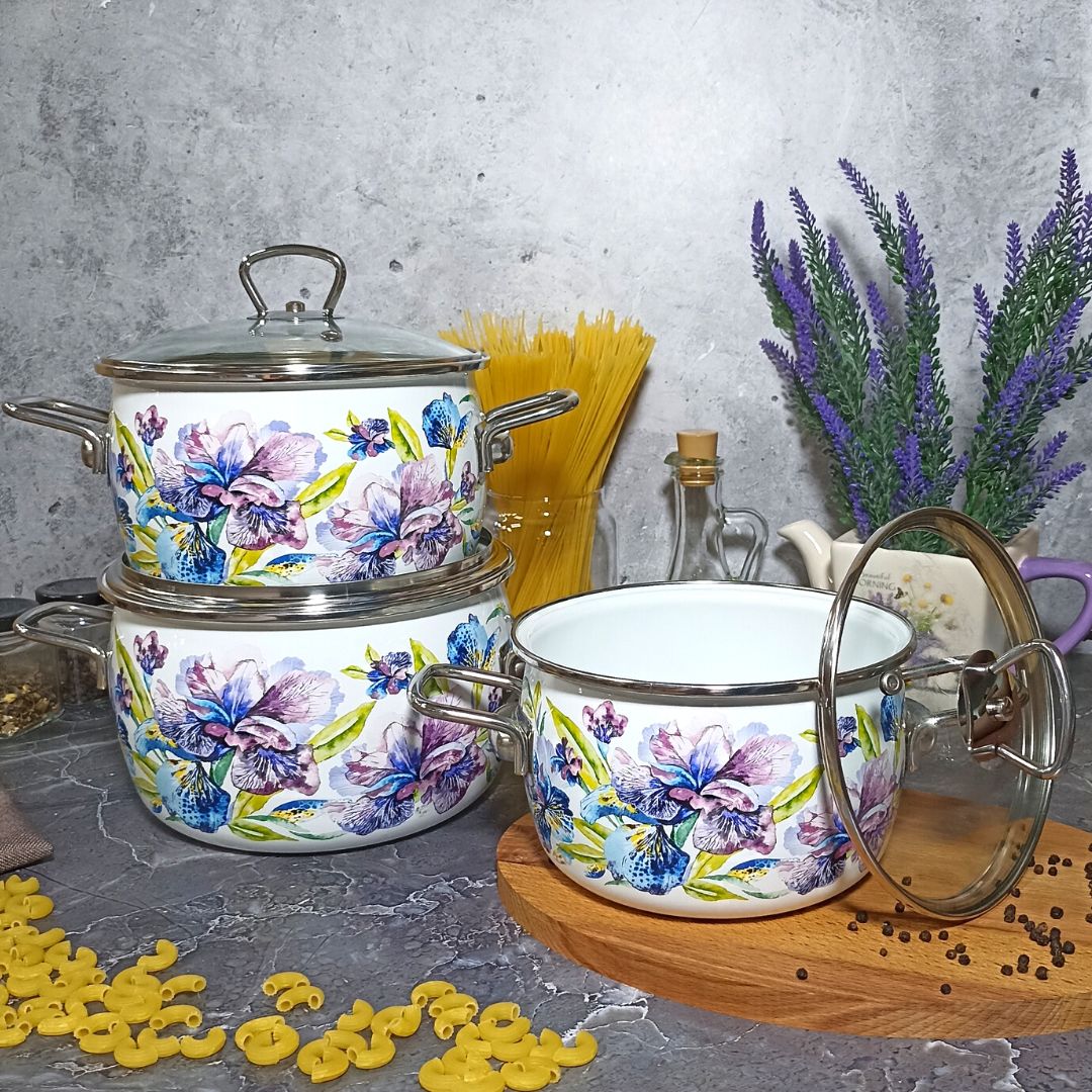 Набор стальных эмалированных кастрюль сферической формы для тепловой обработки пищевых продуктов. Кастрюли комплектуются крышками из жаропрочного стекла с пароотводом, эргономичными ручками из коррозионно-стойкой стали, борта защищены нержавеющим ободком. Посуда изготовлена по ГОСТ 24788 из высококачественного стального проката, покрытого двумя слоями жаропрочной эмали. Увеличенная толщина металлического корпуса изделий (1 мм) обеспечивает более равномерное распределение и сохранение тепла при приготовлении пищи на любых видах плит, в т.ч. индукционных.Посуда может быть использована для тепловой обработки пищевых продуктов, для приготовления холодных блюд и сервировки стола, для хранения и переноски пищевых продуктов, для вспомогательных целей.