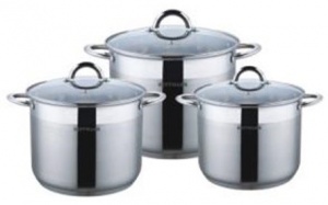 Набор кастрюль 6 пр. нержавеющая ст. (кастрюли 3шт-14,2л, 16,2л, 19,2л) НМ 6699