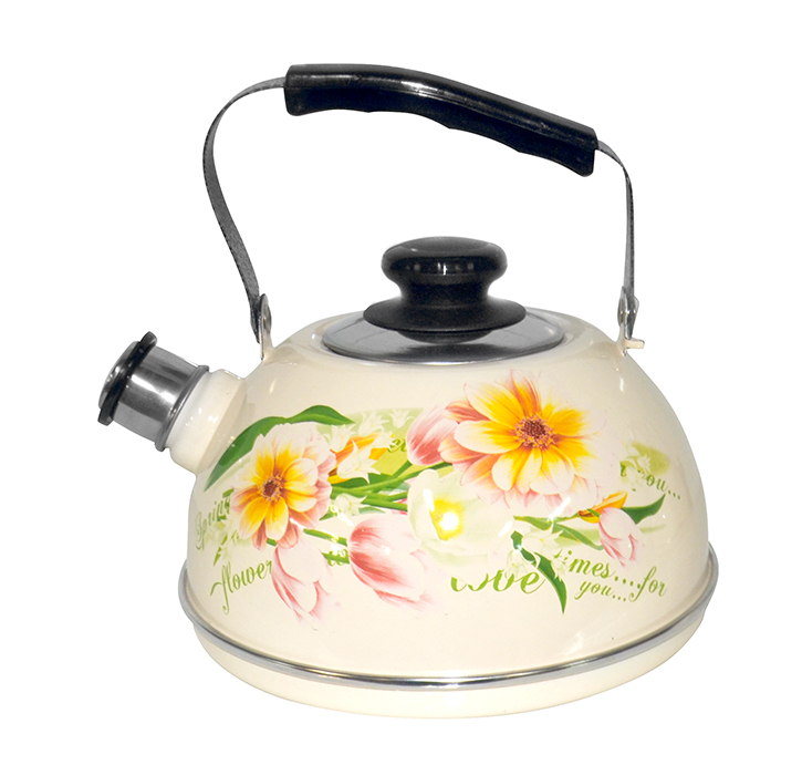 Чайник эмалированный со свистком. Внешнее трехслойное эмалевое покрытие не вступает во взаимодействие с пищевыми продуктами и надежно защищает от кислот и щелочей. Подвижная бакелитовая ручка. Свисток съемный из нержавеющей стали. Крышка плотно прилегает к краю. Может быть использован на всех типах кухонных плит: электрических, газовых, керамических, индукционных. Подходит для мытья в посудомоечной машине
