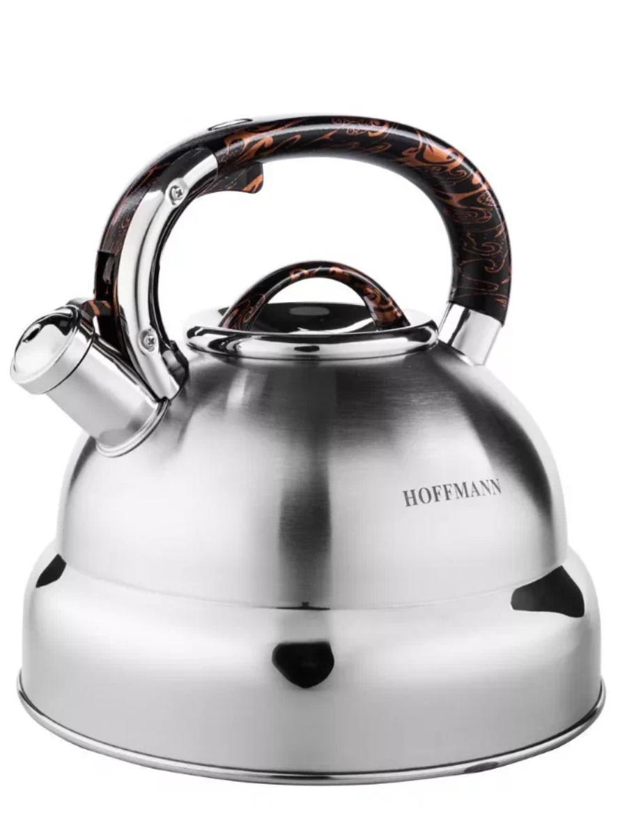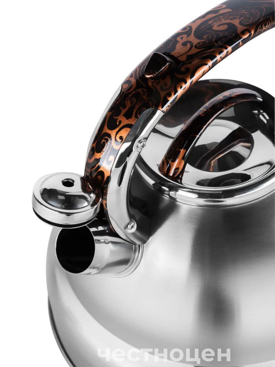 Чайник со свистком из высококачественной нержавеющей стали толщиной 0,6мм и 3-х капсульным антипригарным дном матовой/зеркальной полировки. Подходит для газовой, электрической, керамической и индукционной плиты. Эргономичная бакелитовая ручка позволяет брать чайник, не рискуя обжечься. Эргономичная форма обеспечивает максимальный комфорт при подъеме и переливании Съемная большая крышка делает чистку чайника простой и удобной. Громкий свисток оповестит вас о закипании, позволяя сосредоточиться на других проблемах, как уборка дома, приготовление блюд, детские игры с ребенком. Можно чистить в посудомоечной машине. Термоаккумулирующее капсулированное дно обеспечивает равномерную максимальную теплопроводность для повышения быстроты закипания. Благодаря эстетичному дизайну впишется в любой интерьер на кухне, легко сочетается с остальной посудой в доме или на даче.