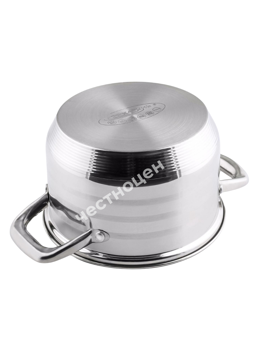 Кастрюли линейки "Элис" изготовлены из высококачественной нержавеющей стали. На внешние стенки нанесена стильная комбинированная полировка, а на внутренней стороне мерная шкала. Прочное 5-ти слойное дно равномерно распределяет тепло и прекрасно сохраняет температуру, благодаря чему приготовление пищи происходит быстрее. Крышка выполнена из термостойкого закаленного стекла, снабжена металлическим ободком для прочности и плотного закрывания и пароотводом. Широкие эргономичные ручки позволяют легко и удобно перемещать кастрюлю. Посуда данной серии подходит для всех современных типов плит, в том числе индукционных, а также для использования в посудомоечной машине.