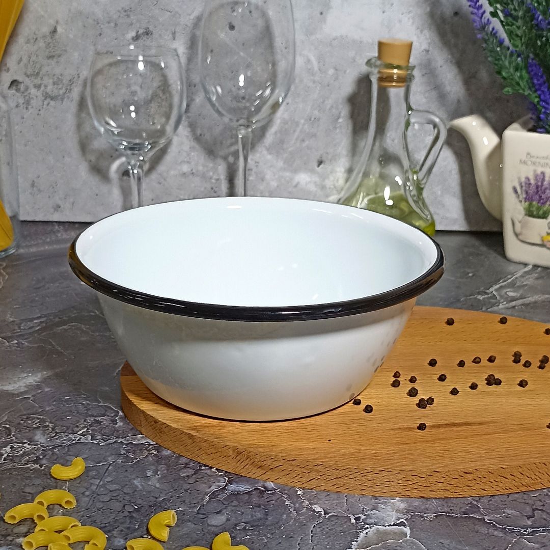 Миска 1.5л 2с7 без рисунка изготовлена из эмалированной стали, что обеспечивает ей прочность и долговечность. Эмалированное покрытие миски защищает ее от коррозии и легко моется.