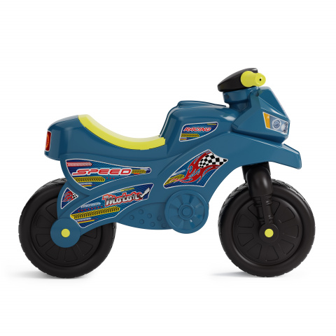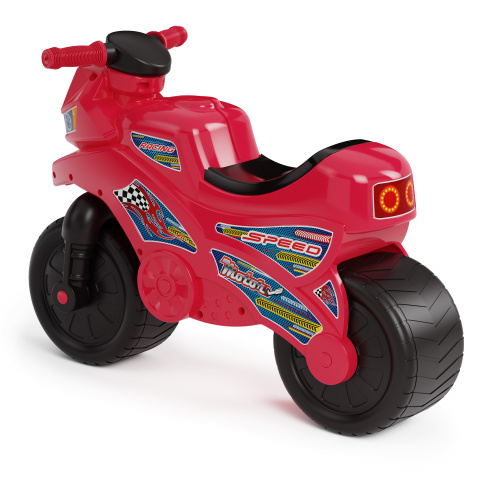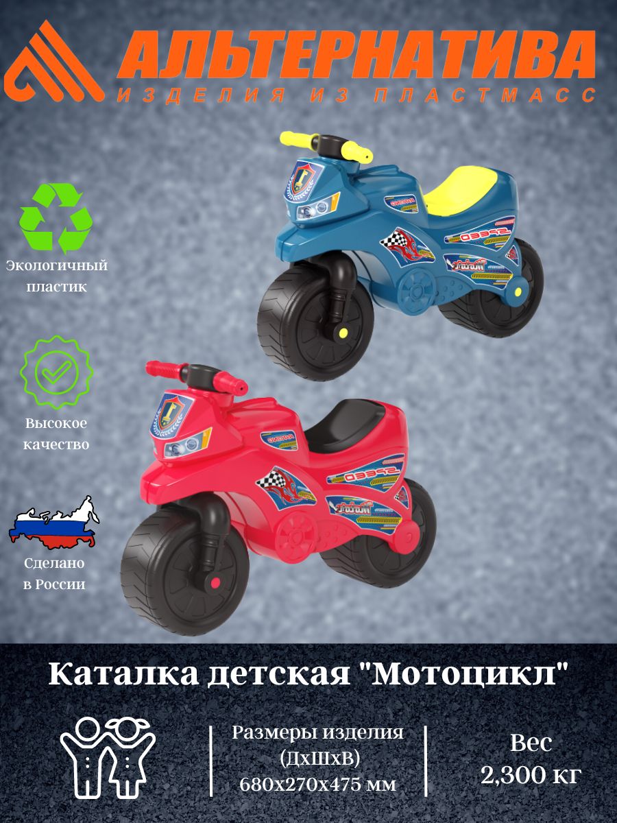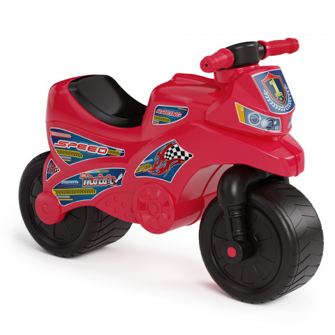 Катание на таком мотоцикле для ребенка будет одновременно увлекательным и абсолютно безопасным. Преимуществом такого мотоцикла является его маленький вес и компактные габариты, так что поднять и перенести его не составит труда ни для молодых мам, ни для самих малышей. Даже если погода не позволит выйти на улицу, то ваш ребенок найдет развлечение и в помещении. Благодаря своей расцветке, каталка очень похожа на настоящий мотоцикл. Это доставит вашему ребенку еще больше радости.