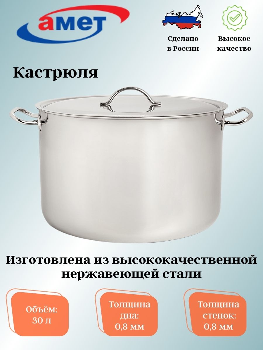Цельнотянутая кастрюля Амет 30 л изготовлена из листа пищевой нержавеющей стали, безопасной для приготовления, хранения пищи и напитков. Корпус отличается особой прочностью и надёжностью, так как предполагает работу с большим объёмом продуктов и интенсивным использованием.
