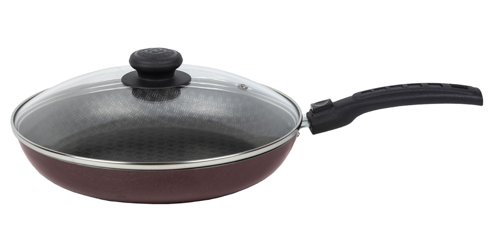 60682234 Сковорода 220мм, 1 ручка,стеклянная крышка "Кружево"
