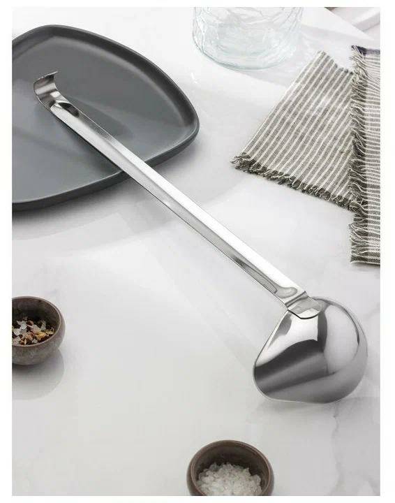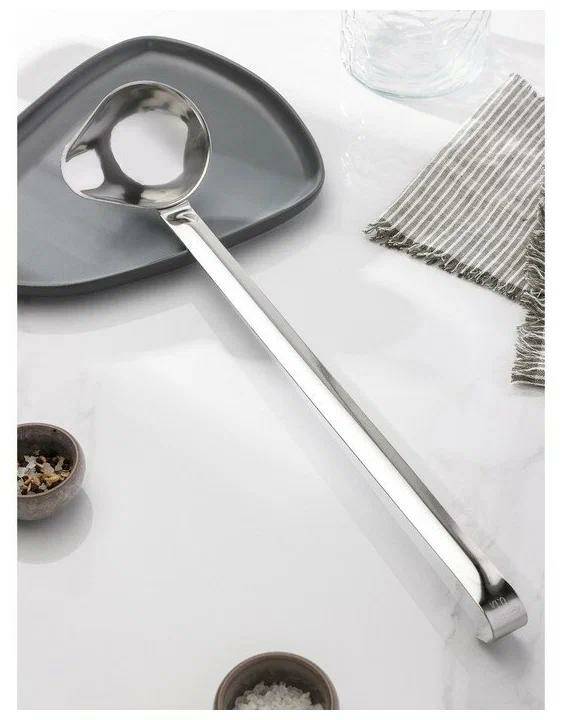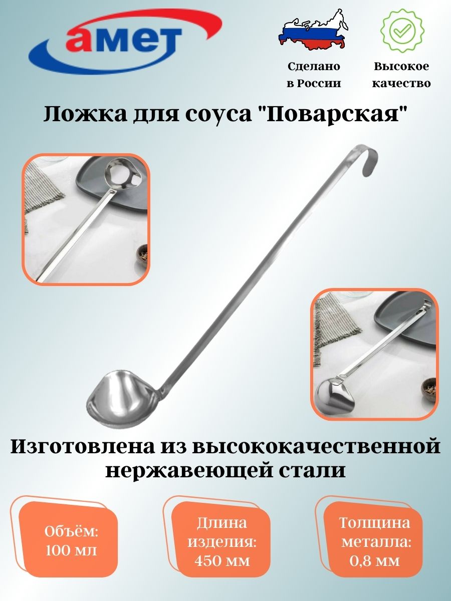 Ложка «Поварская» для соусов, подливы имеет специальную форму для аккуратной подачи жидких заправок и длинную ручку. Может использоваться на домашней и профессиональной кухне. Материал изделия – нержавеющая сталь.