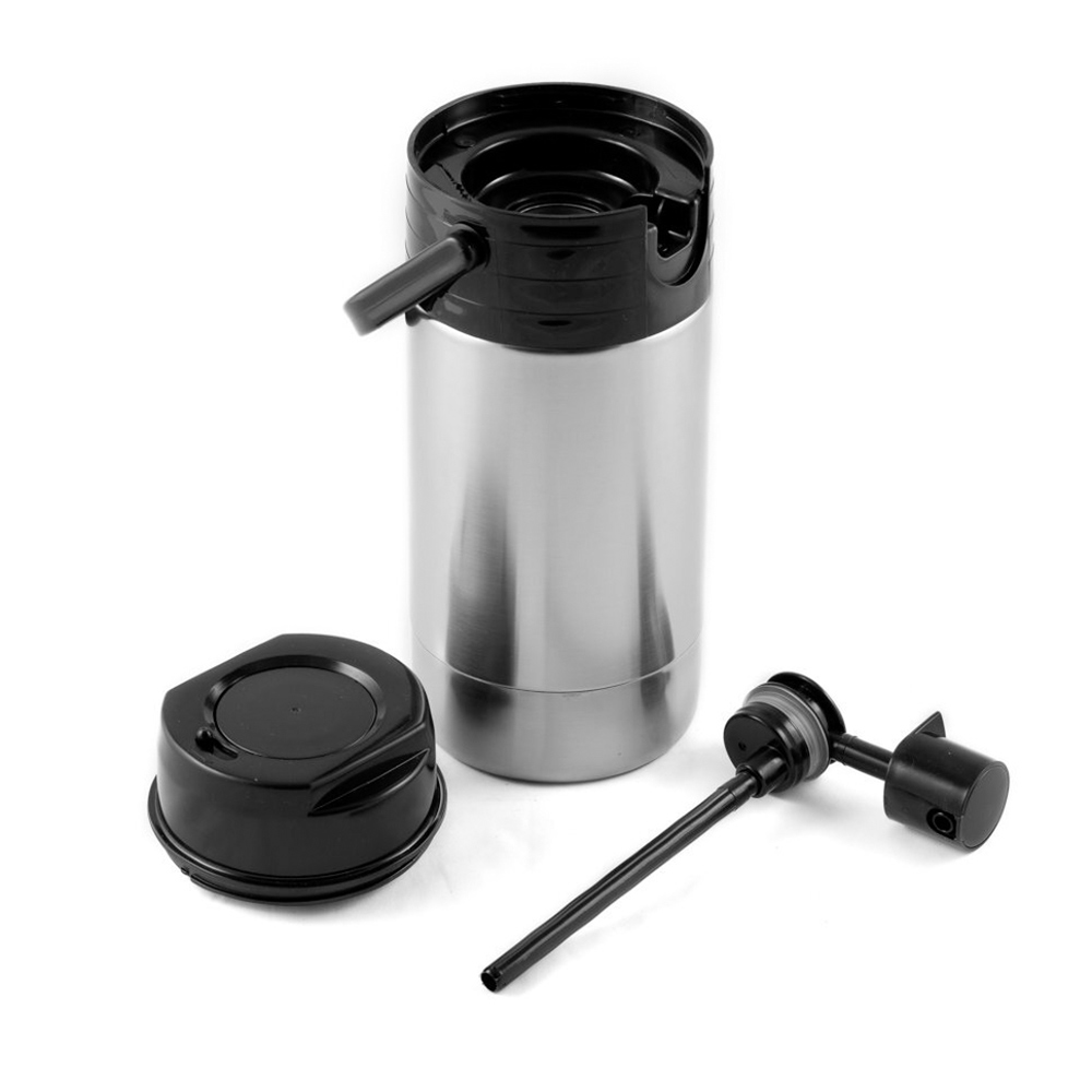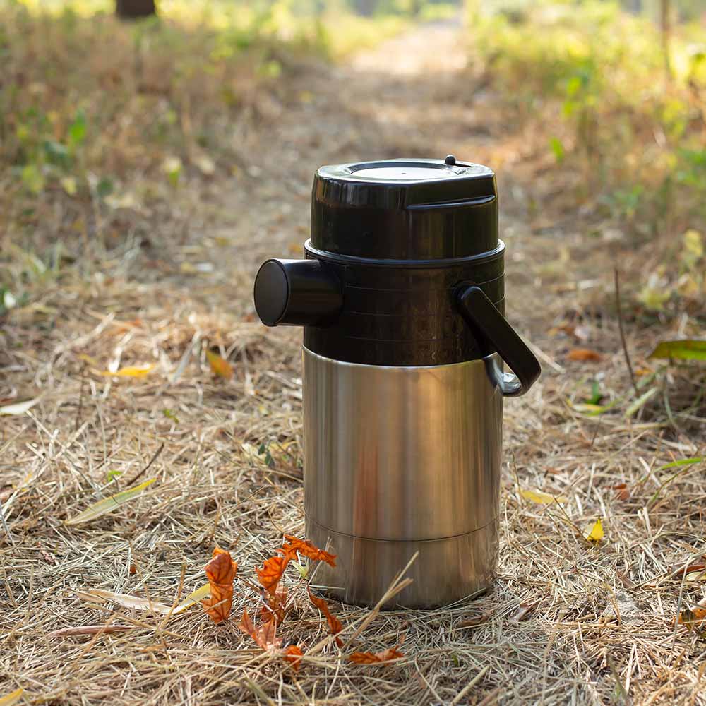 Термос «Гейзер» может использоваться на домашней кухне или даче. Его ёмкость 2 л с двойной колбой позволяет длительное время сохранять напитки тёплыми и готовыми к розливу.Для удобства подачи термос Амет оснащён пневмонасосом, который приводится в работу нажатием кнопки на крышке. Вам не нужно откручивать её и поднимать тяжёлую ёмкость, чтобы налить горячий чай — помпа все сделает за вас. За одно нажатие подаётся примерно 100 мл жидкости. Термос не рекомендуется наклонять.Для безопасности термос имеет блокиратор кнопки разлива. Для удобной переноски есть пластиковая ручка.
