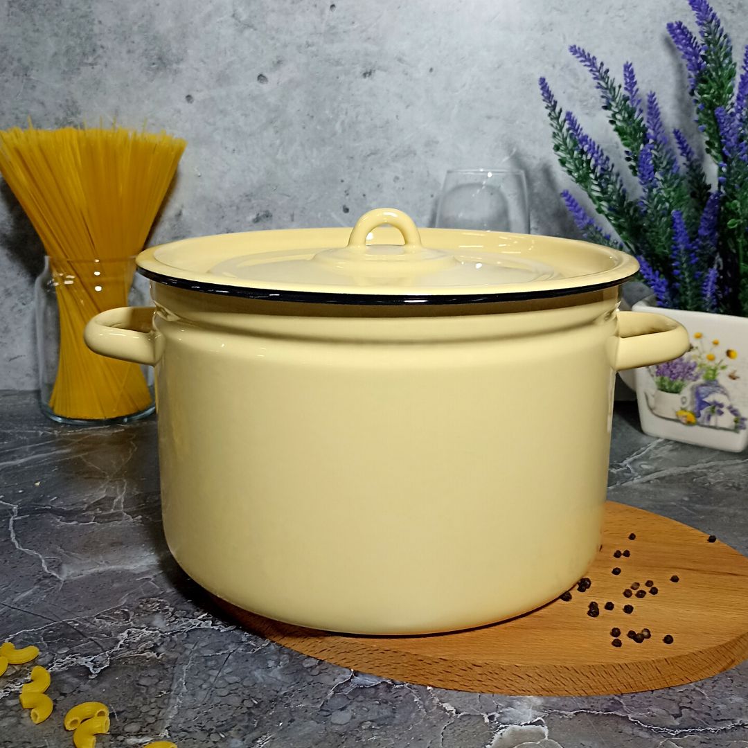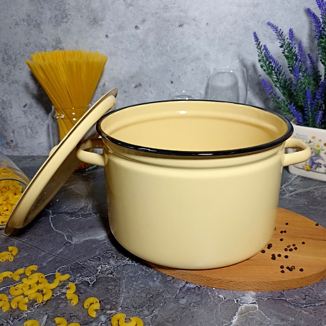 Кастрюля цилиндрическая с высоким корпусом изготовлена по ГОСТ 24788 из высококачественного стального проката, покрытого двумя слоями жаропрочной эмали. Эмалевое покрытие на основе силикатных фритт, являясь стекольной массой, не вступает во взаимодействие с продуктами, не искажает их вкусовые качества, не окисляется, при нагревании не выделяет опасные для здоровья человека соединения. Многослойное эмалевое покрытие практично, долговечно и устойчиво к появлению царапин и сколов. Прочный металлический корпус не деформируется в процессе эксплуатации и гарантирует эффективную тепловую обработку пищи.