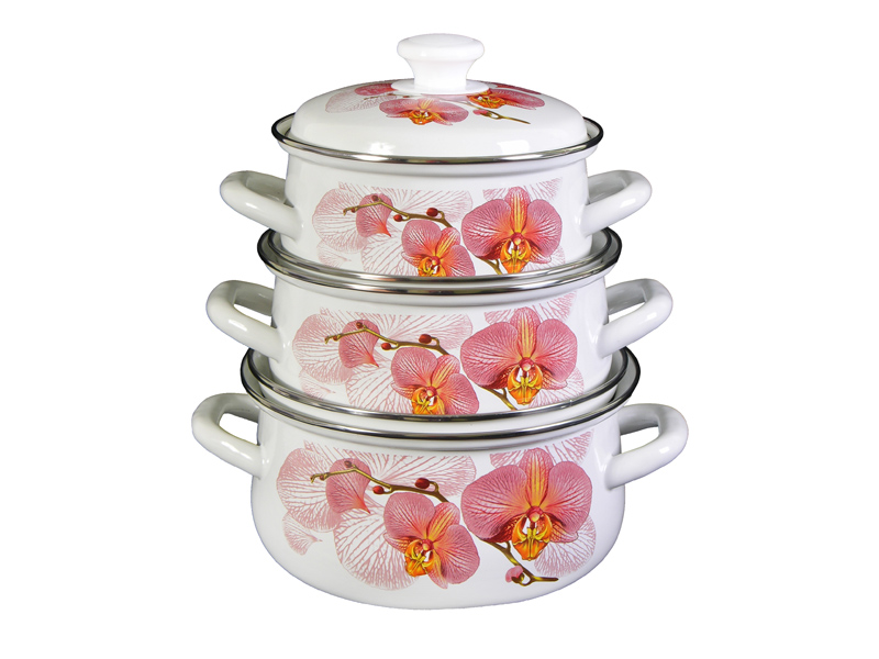 Набор эмалированных кастрюль Анжелина-1-бел (белая), 3 предмета (1,5л/2л/3л)с красочными дизайнами, отлично подойдут под любой декор кухни. Данный набор станет радостью для ваших глаз. Посуда рассчитана на длительный срок эксплуатации. Она подходит для любых видов плит и посудомоечных машин. Прочный корпус из холоднокатаного стального проката гарантирует эффективную тепловую обработку пищи. Благодаря двойному слою эмалевого покрытия исключается проникновение в пищу оксидов металла. Покрытие инертно и устойчиво к пищевым кислотам, не вступает во взаимодействие с продуктами и не искажает их вкусовые качества.