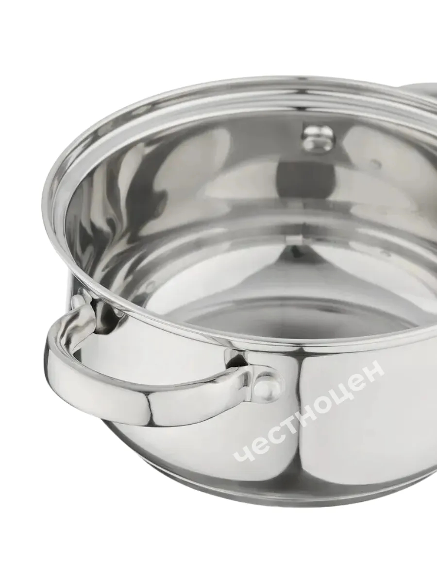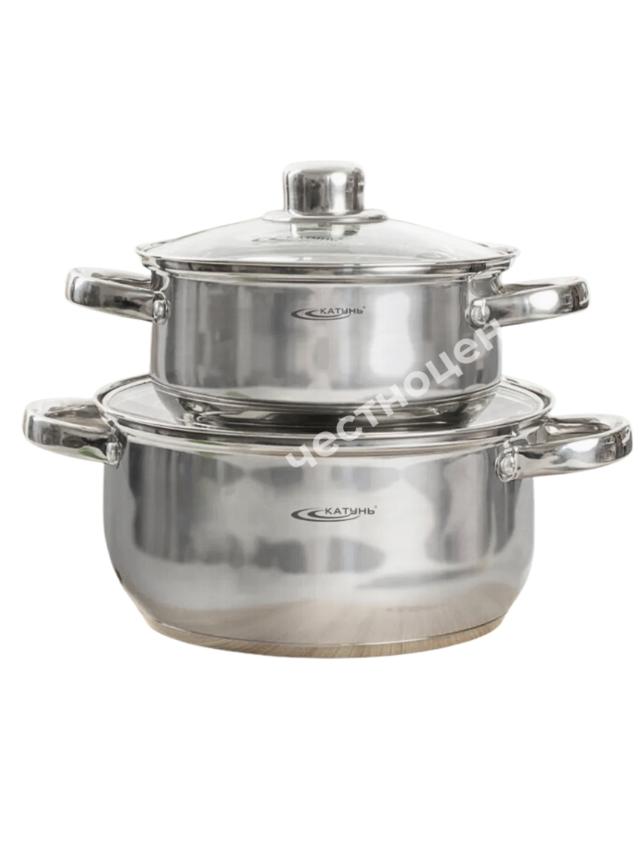 Набор кастрюль нерж сталь ГРЕТТА (2,2+4,2л) в подарочной упаковке, КТ04-F. Набор посуды серии "Гретта" выполнен из высококачественной нержавеющей стали. Благодаря трехслойному термоаккумулирующему дну происходит равномерное распределение температуры по всей поверхности кастрюли, что обеспечивает быстрое приготовление. Крышка выполнена из жаростойкого прозрачного стекла, оснащена ручкой, металлическим ободом и отверстием для выпуска пара. Ручки надежно прикреплены с помощью заклепок. Форма корпуса - грушевидная, наружная полировка - зеркальная. Подходит для всех видов плит, теперь в том числе и для индукционных. Набор кастрюль можно мыть в посудомоечной машине.