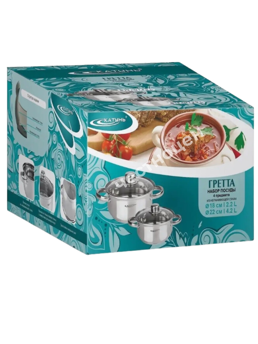Набор кастрюль 4пр "Гретта" (2,2л+4,2л) KT04-F