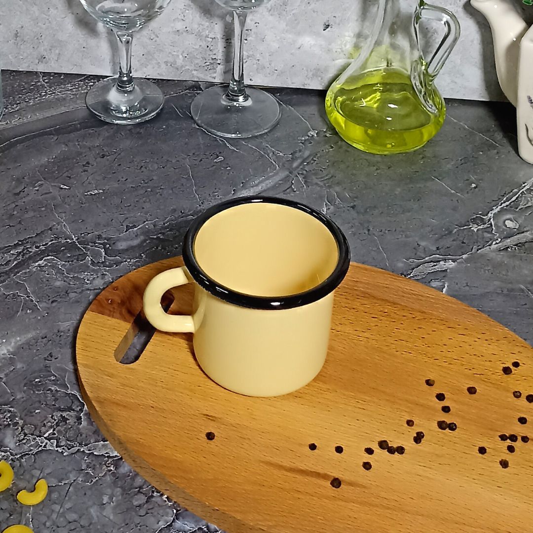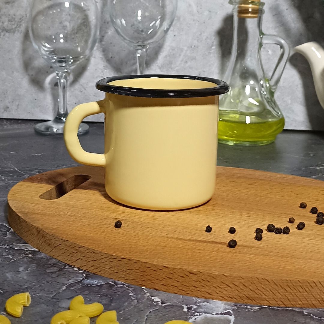Кружка стальная эмалированная изготовлена по ГОСТ 24788 из высококачественного стального проката, покрытого двумя слоями жаропрочной эмали. Эмалевое покрытие на основе силикатных фритт, являясь стекольной массой, не вступает во взаимодействие с продуктами, не искажает их вкусовые качества, не окисляется, при нагревании не выделяет опасные для здоровья человека соединения. Многослойное эмалевое покрытие практично, долговечно и устойчиво к появлению царапин и сколов.Следы от обжигового инструмента на эмалевом покрытии изделия (на дне и под бортом), а также технологическое отверстие на внутренней стороне ручки являются частью технологического процесса производства и не относятся к браковочным признакам, не влияют на эксплуатационные свойства и безопасность посуды.