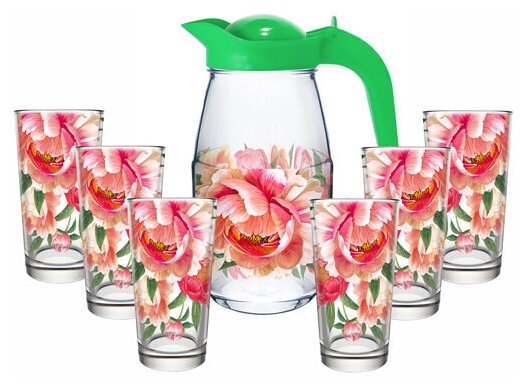 Набор питьевой состоит из кувшина и шести стаканов, которые можно использовать как для воды, так и для других прохладительных напитков. Набор будет прекрасным подарком для любого праздника или события, а также просто для украшения вашего дома. Он идеально подойдет для сервировки завтрака или ужина и создаст уютную атмосферу в вашем доме.