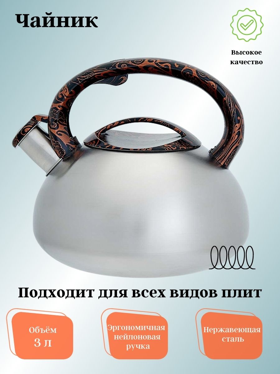 Чайник для плиты 3,0л нержавеющая сталь WEBBER ВЕ-0594 со свистком сатин