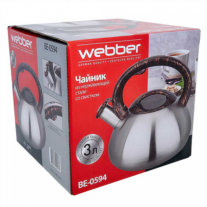 Чайник для плиты 3,0л нержавеющая сталь WEBBER ВЕ-0594 со свистком сатин