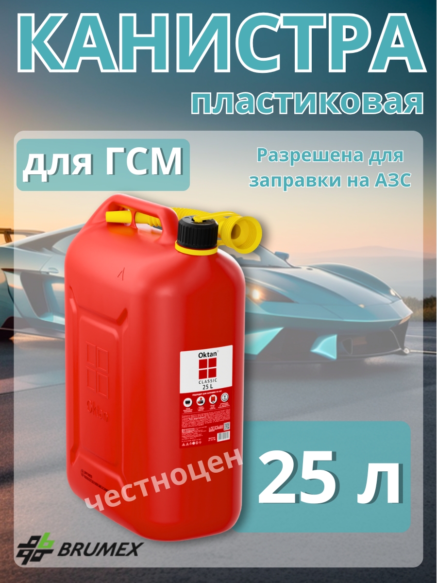 Канистра ГСМ Классик 25 л Oktan KGA1-01-05 предназначена для хранения и транспортировки топлива и горюче-смазочных материалов. Изготовлена из ПЭНД. Снабжена гибким носиком с технологией «Антибульк» и имеет замок от детей.