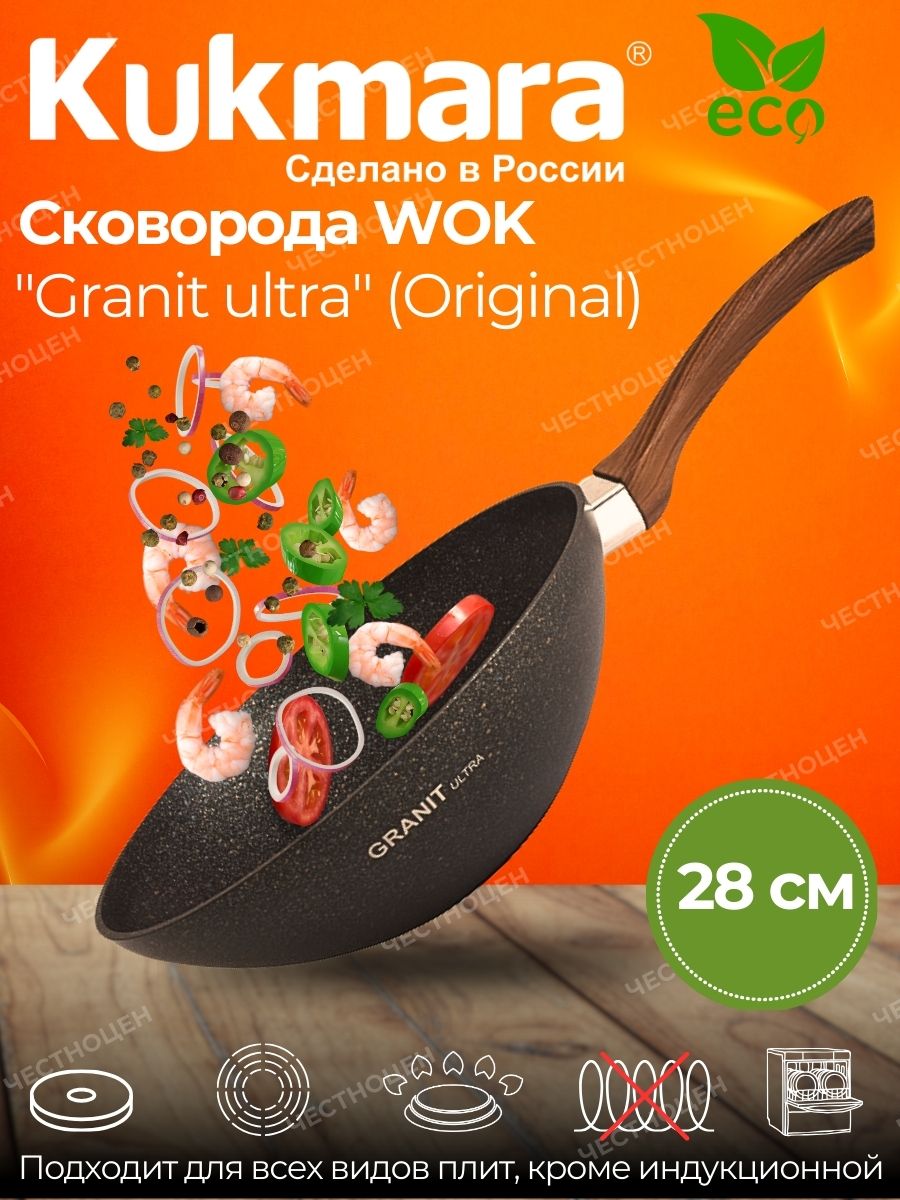 Сковорода Wok (классическая) 280/95мм с ручкой, АП линия "Granit ultra" (original) свкго280а