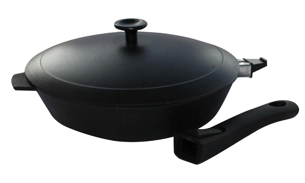Сковорода литая чугунная 260*60 со съемной бакелитовой ручкой с алюм крышкой с6061