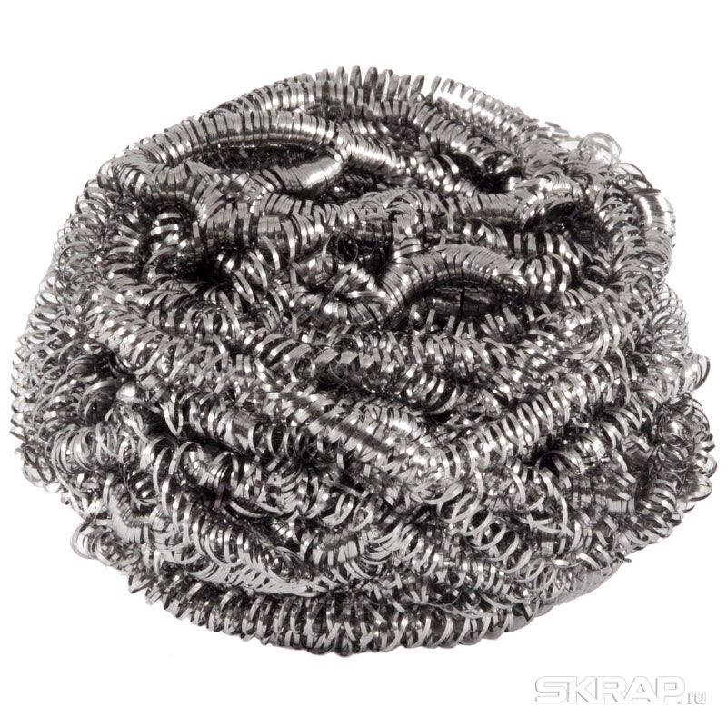 Металлическая губка для посуды спираль, вес 12 гр, предназначена для сильно загрязненных поверхностей и удаления жира.