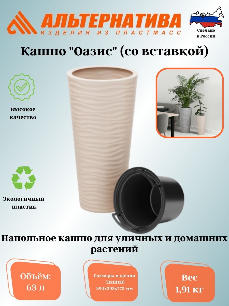 Кашпо "Оазис" 63л (со вставкой 13л) св.бежевый М8083