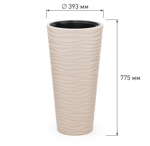 Напольное кашпо для уличных и домашних растений – Оазис. Специальная внутренняя вставка облегчит процесс высадки растения и уход за ним. Изделие отличается особой прочностью и морозостойкостью. Внешне кашпо напоминает песчаные дюны, по среди которых расположился цветочный Оазис. Данный дизайн отлично впишется в любой интерьер.